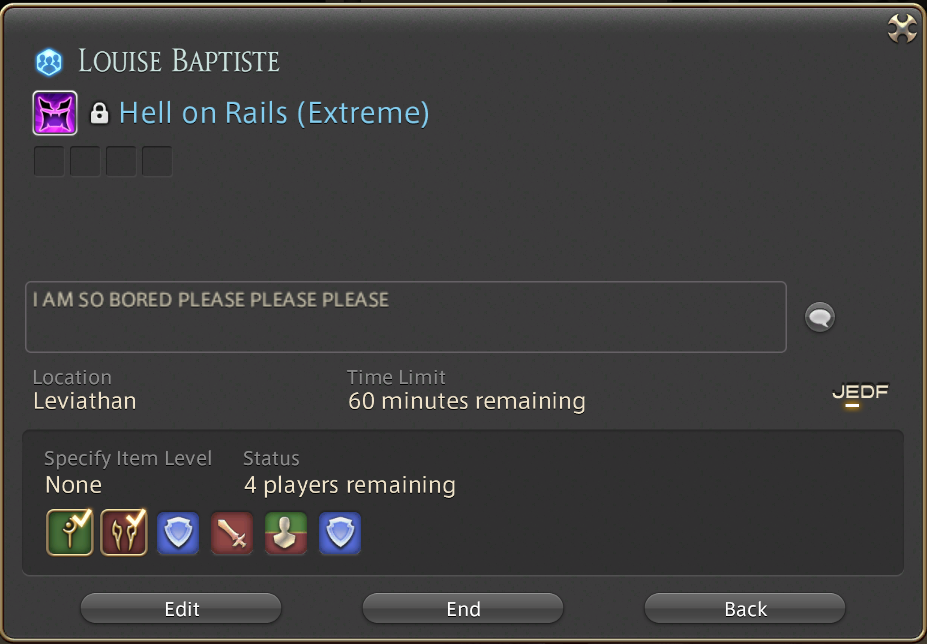 some tank kept chasing me around with a tank buster while i'm trying to do these msq trials. so i just stood still, let him kill me, then played 100% OJ for 10 minutes while he finished the trial for me. i won in OJ btw.