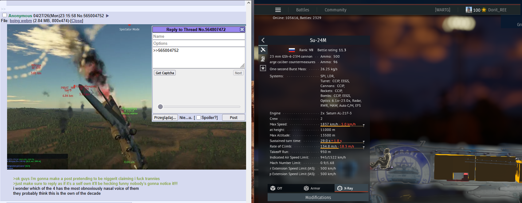 Axed EditionPrevious thread: >>564542343>Official site:warthunder.com/>Fan created content:live.warthunder.com/>Wiki with info on tech trees, weapon systems and game mechanics:wiki.warthunder.com/Main_Page>Old, better wiki:old-wiki.warthunder.com/Main_Page>Old forums archive:pastebin.com/EyMhsLAJ>Guides to Air and Ground battles + MEC:steamcommunity.com/sharedfiles/filedetails/?id=742852313docs.google.com/spreadsheets/d/1hgHbWlSjefFhCqOUeGpoKQntdQDPG32X7XQo9EqDF00old-forum.warthunder.com/index.php?/topic/438251-strategic-tips-for-ground-battle-maps-36-maps-90-videos-as-of-28august2020>Guides on missiles, radars, radar warning receivers:www.youtube.com/watch?v=Weghk_2DpfAwww.youtube.com/watch?v=_tQ6JzPWEFUyoutu.be/DOGazUgUdsQyoutu.be/wAtTS8xSYEc>Guides on how to evade missiles and survive top tier:www.youtube.com/watch?v=AsmGiyODPuMwww.youtube.com/watch?v=vUJJ94NwH_gwww.youtube.com/watch?v=8CAN_Mo2d74www.youtube.com/watch?v=NbKcAdLoWDkwww.youtube.com/watch?v=NYfNbDZw5J8>Guided weapons statistics:docs.google.com/spreadsheets/d/1SsOpw9LAKOs0V5FBnv1VqAlu3OssmX7DJaaVAUREw78>What tanks have thermals and their generations:thunderview.net/thermals/>Someone sending you runes?:translate.yandex.com/ocr>Player, game mode, and vehicle stats:https://statshark.net/Reminder: i've seen footageThread theme: https://www.youtube.com/watch?v=xTYontCtU5g