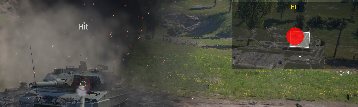 Bit of a noob question:I'm in a test drive and shooting at this leopard 2A5 with HEAT. The first shot of the heat round blew off that cover that's on the front of the turret, which is why it's gone in the pic. If I now shoot at the same spot, assuming the heat round to fuse because the cover is no longer there, it doesn't, and the bullet cam shows it as still there, despite the tank no longer having it.Which is it then? Is the bullet cam wrong, because it doesn't reflect the damaged state of the 2A5, or is the cover still there, preventing the heat from fusing, despite the game showing it as blown off?