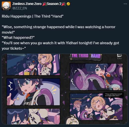 Previous: >>564780474>NewsVersion 2.8 Special Program will begin on April 24 at 19:30 (UTC+8)Agent Record | Starlight - Billyhttps://www.hoyolab.com/article/44378132Agent Record | Promeiahttps://www.hoyolab.com/article/44377604Version 2.7 Special Programhttps://youtu.be/sK_s_MXs89M [Embed]>Newest Trailer/Teaser/Character demohttps://youtu.be/tN0ibny9Ans [Embed] (EN)https://youtu.be/25vaOHfSDUY [Embed] (JP)https://youtu.be/7FbKuJv0e1I [Embed] (EN)https://youtu.be/rBgqwLdtX-I [Embed] (JP)https://youtu.be/LSEz6KT026k [Embed]>Upcoming Events for 2.7https://zenless.hoyoverse.com/en-us/news/163253Chronicle of Simmering Flavors 03/25 - 05/05All-New Program 03/24 - 05/05Special Disaster Control Squad 04/03 - 04/20Old Friends, New Commissions! 04/15 - 05/05"En-Nah" Into Your Lap 04/15 - 05/05Adventure Footage Freeze Frame 04/22 - 05/05Charge! Battle Against the Negative Reviews 04/29 - 05/13Advanced Bounty: Area Patrol 04/10 - 04/15Data Bounty: Combat Simulation 04/29 - 05/04>Redeemable codes (claimable in-game or online)https://zenless.hoyoverse.com/redemptionZENLESSGIFTZZZCUTENESSZZZ27CHAMPIONPROMEIA>Resources and useful linkshttps://rentry.org/zzzlinkshttps://rentry.org/ZZZ-Friendshttps://rentry.org/ZZZ-Guilds>/zzz/ OP pastebin (use this if making new thread):https://pastebin.com/PzbMf13P