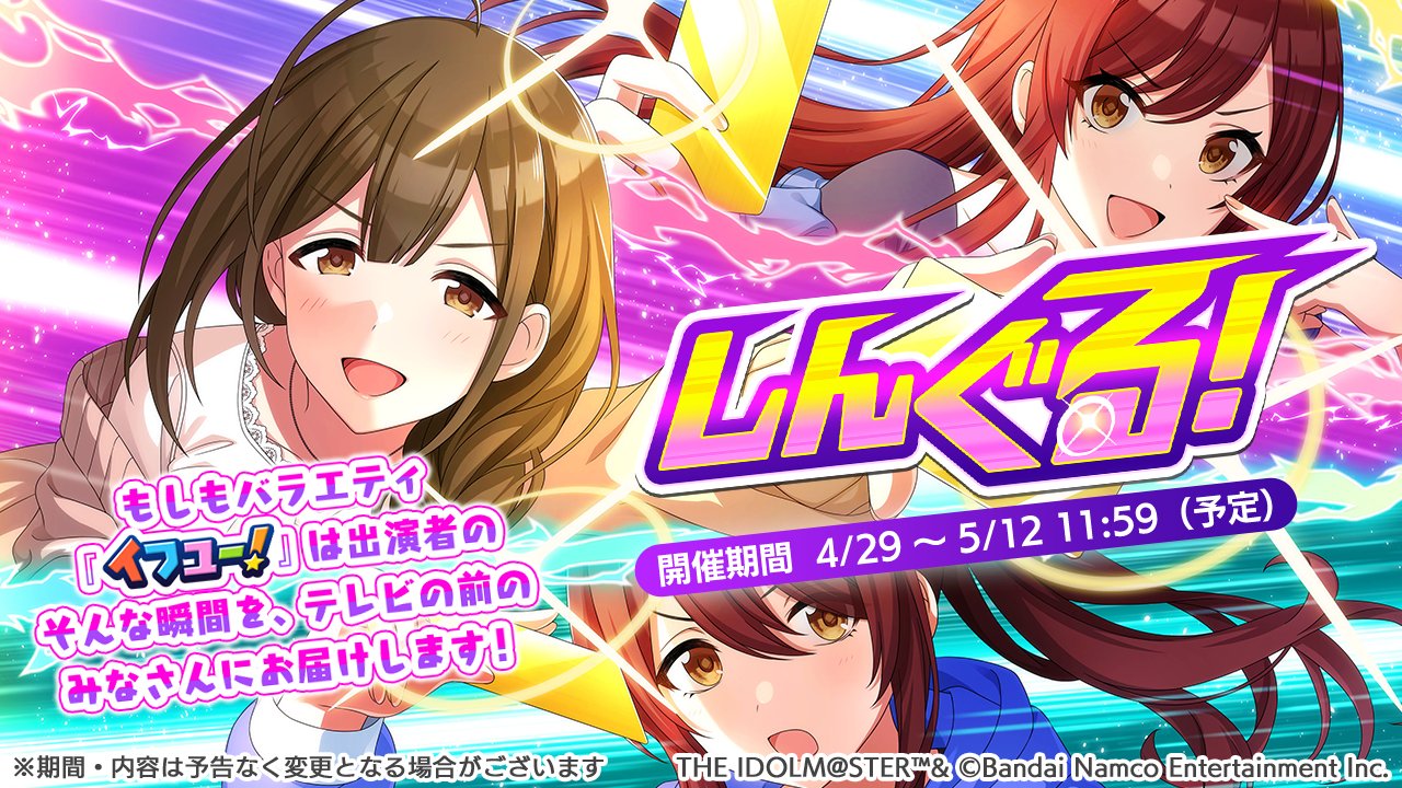 iDOLM@STER ThreadPrevious iM@S Thread: >>564778978Official website: idolmaster-official.jpJapanese news: imasnews765.comEnglish wiki: project-imas.wikiAPKs: apk.ksmz.moeOld archive of materials: sites.google.com/view/yukipobackupOld FAQ + Resource Links: pastebin.com/icRtaLvvMaterial translations + Music downloads: pastebin.com/DebHdukECharacter birthdays: pastebin.com/cLdezeDuNext thread OP: pastebin.com/A5UGxTuBHelpful Links: pastebin.com/Z70CGAsN>Event/Gacha Dates (Apr 25th): >>564727162 >>564727231- Previous News: >>564778996SUNDAY:Apr 26th, 1PM JST: VL Cosmo's Free Talk Stream: youtu.be/03iskbDRFXAApr 26th, 5PM JST: Shiny Colors 8th LIVE "iと夢" DAY 2: youtu.be/F3MNaxTijKoApr 26th, 8PM JST: Shiny Colors 8th LIVE "iと夢" DAY 2 AP stream: youtu.be/8O6d7_swVw4 >>564161071MONDAY:Apr 27th, 7PM JST: Shiny Colors 8th Anniversary Special stream: youtu.be/zR_qvRDySCM nico.ms/lv350268165 >>563802996 >>563802857Apr 27th, 8PM JST: Starlight Stage Commu Special Edit Video with Kozue and Yukimi: >>564140676Apr 27th to June 7th: Gakuen x KARAOKE MANEKINEKO collab part 2