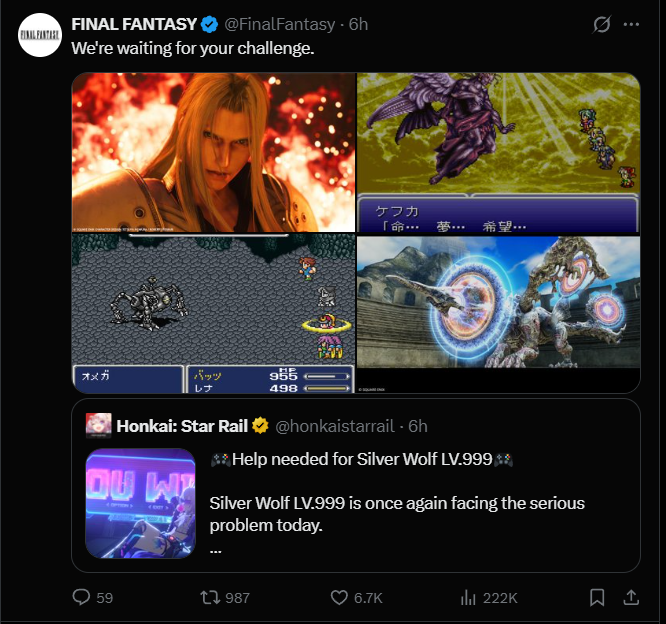 Previous: >>564824563>Download - https://hsr.hoyoverse.com/en-us/home>4.2 Preview Page - https://act.hoyoverse.com/puzzle/hkrpg/e20260410version_1370/index.html>Version 4.2 Trailer: "So Laughed the Masses"https://www.youtube.com/watch?v=NyM_seY0XKghttps://www.youtube.com/watch?v=QaHPMkksn3U>Silver Wolf LV.999 Character Trailer: "Solo Maxxing"https://www.youtube.com/watch?v=va-4BypzDQohttps://www.youtube.com/watch?v=LkxwwIyXJxE>3rd Anniversary Theme Song: "Side Quest King"https://www.youtube.com/watch?v=jgtPZdB9cWAhttps://www.youtube.com/watch?v=Ndis7_as3vg>Honkai: Star Rail x MAPPA Animation Concept Trailerhttps://www.youtube.com/watch?v=j6e_4OYVbxchttps://www.youtube.com/watch?v=KM7KoZM9wKE>Improv Tour Trailer: "Beginner's Guide"https://www.youtube.com/watch?v=FArOcK-HzXohttps://www.youtube.com/watch?v=NEn6umYiiU8>Myriad Celestia Trailer — "Scene 999: GAME NOT OVER"https://www.youtube.com/watch?v=paFelc1vM1khttps://www.youtube.com/watch?v=k9rCUlWO6y8>Animated Short: "Is This Game Even Playable?"https://www.youtube.com/watch?v=GMY_N6ca3Ighttps://www.youtube.com/watch?v=7TK9bTfoRZo>Current Character Banners: Silver Wolf LV.999, The Dahlia, Castorice, Firefly + Gallagher, Xueyi, Hook - https://www.hoyolab.com/article/44733121>New Drip Marketing:>Mortenax Blade (5* Fire Nihility) - https://www.hoyolab.com/article/44526609>Redeemable Codes - https://hsr.hoyoverse.com/giftEB28LCJRU4W3STARRAILGIFT>/hsrg/ Tools & Resourceshttps://rentry.org/hsrg-resources-14>/hsrg/ Thread Templatehttps://rentry.org/hsrg-thread-template-14