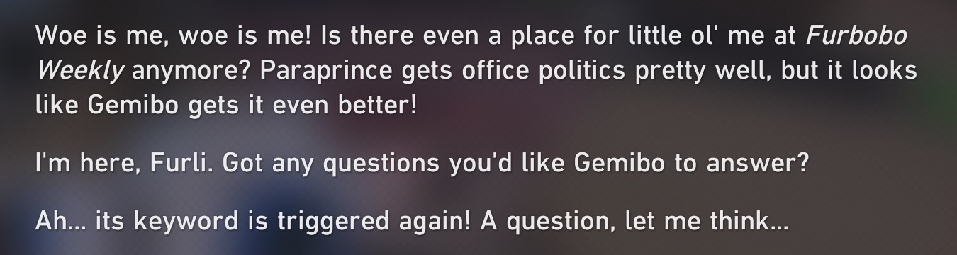 >>564847761>getting an overarching plot appearance with proper buildup and payoff is the "shit end of the stick"yeah getting that focus for one half of a patch and then getting discarded surely is way better