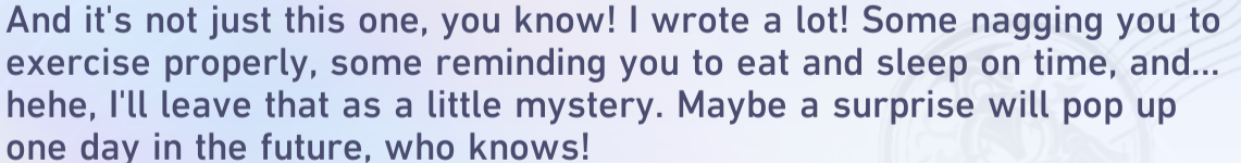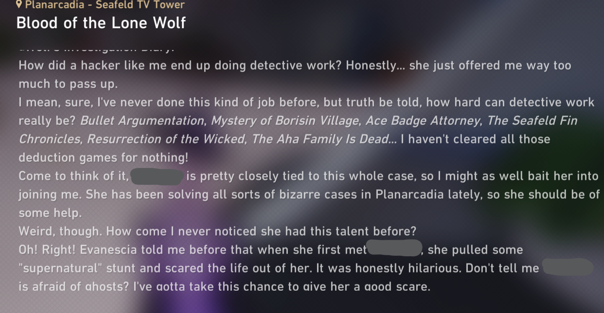 >Silver Wolf's investigation diaryCute, also she's had a long chat with Evanescia already it seems.