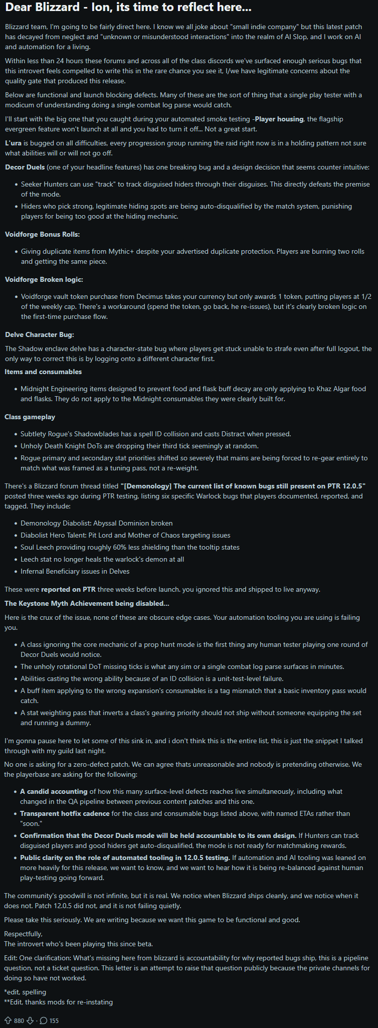 >>564842767>midnight launches as one of the most barren and uninteresting xpacs ever>finally gets a content patch>it's bugged to hellWhat the fuck else do you honestly expect people to talk about???