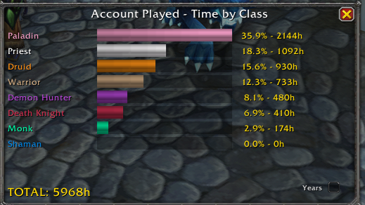 >>564878228I literally leveled 6 characters up to 85 ish before realizing I dont like them, still searching for a cool class and a cool name, tw is almost over, I'm so fucking mad and pissedIm also so burned out I might go to og for a bit lol, wow alone sucks