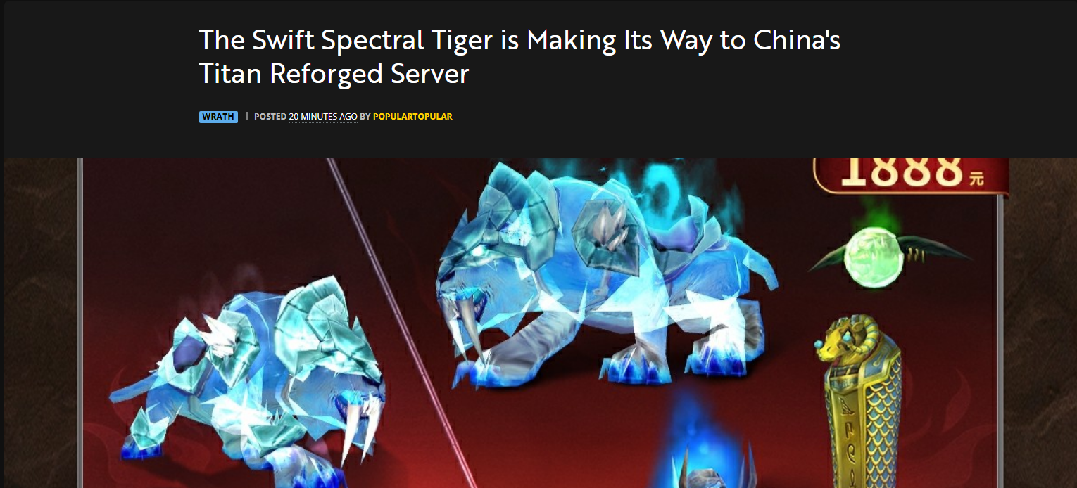 https://www.wowhead.com/wotlk/news/the-swift-spectral-tiger-is-making-its-way-to-chinas-titan-reforged-server-381404china just keeps winning