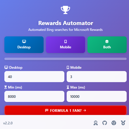 >>564849130mobile check in, doing the bing app searches, mobile autosearch app, and desktop autosearch browser extention. its important to not miss the daily check ins and mobile searches for the extra 1000 points every two weeks
