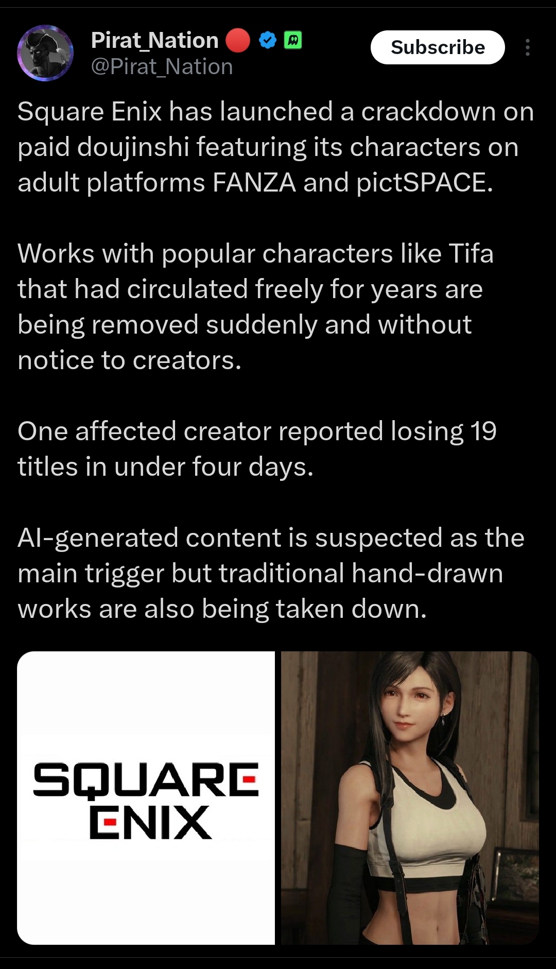 Why is square enix suing and deleting FF doujins?