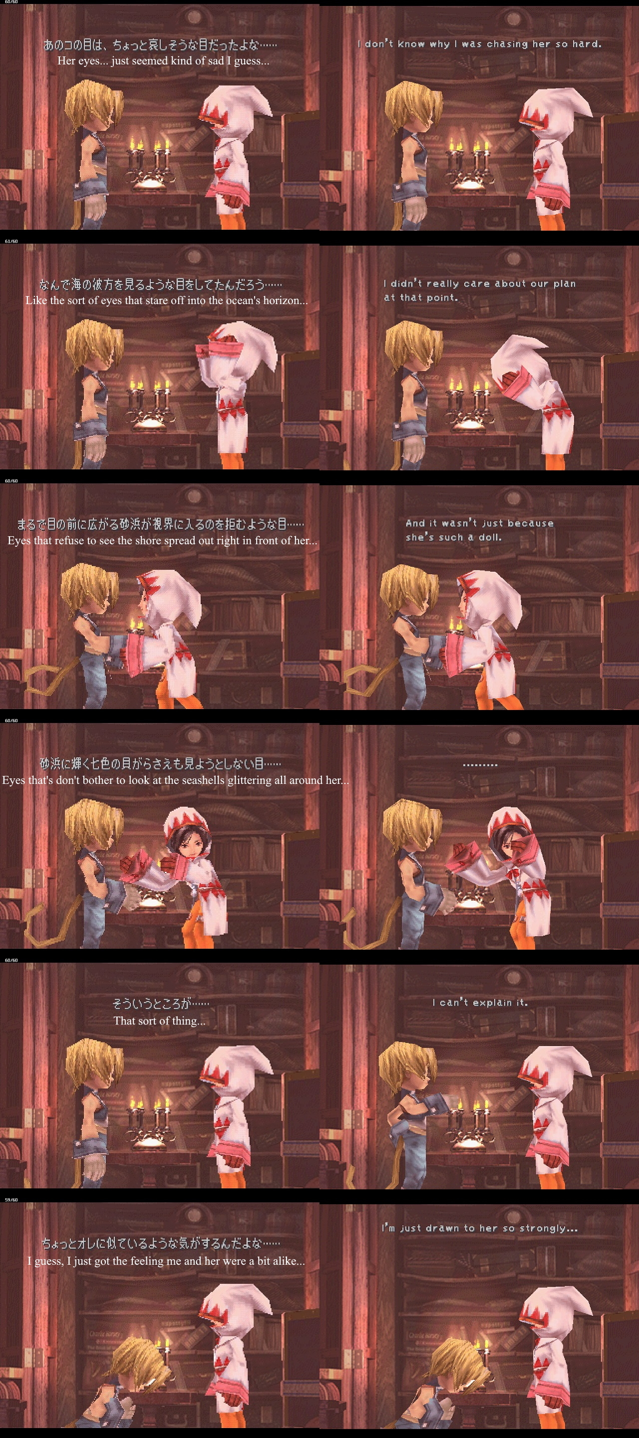 >I still love Zack, he never gave me a reason not to>I've seen Zack in you this whole time>you're mentally unstable, but please play along! I want you to play a certain role!>well, I like you, but then "like" can mean a lotta different things, can't it? 'cause there's liking and then there's liking>I wonder just what type of like this one is>at least now I know where we stand>*dies without ever knowing the real Cloud*P-Peak romance...!