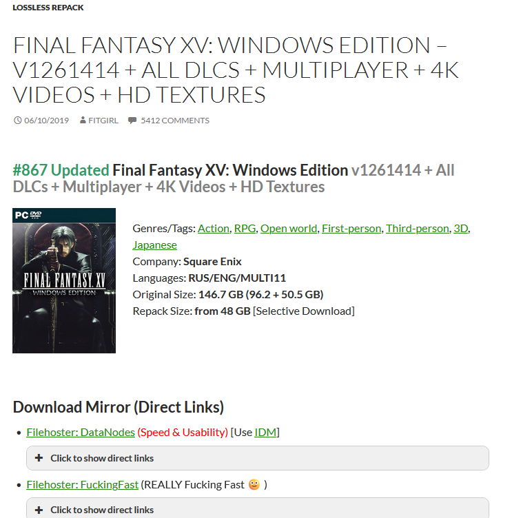 Damn, FF 15 is 146 GB i don't have space for it... maybe i should delete Lightning games shes' a stupid bitch anyways and her games are trash.