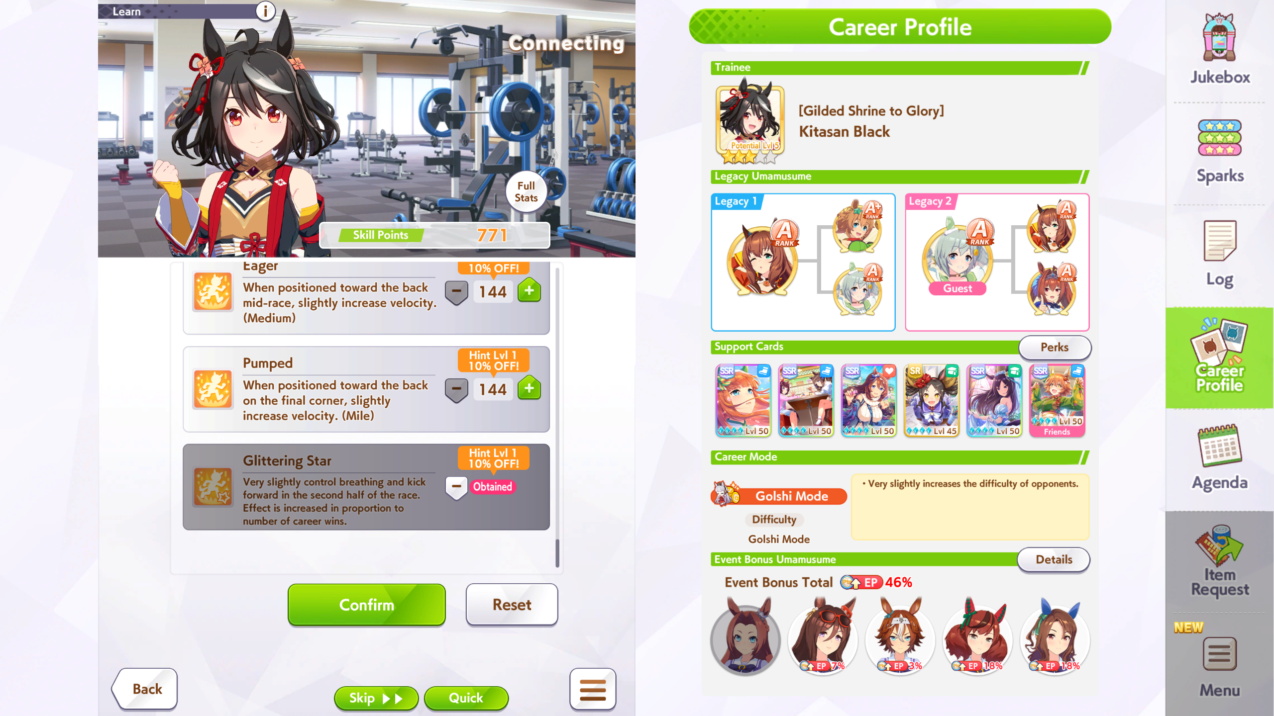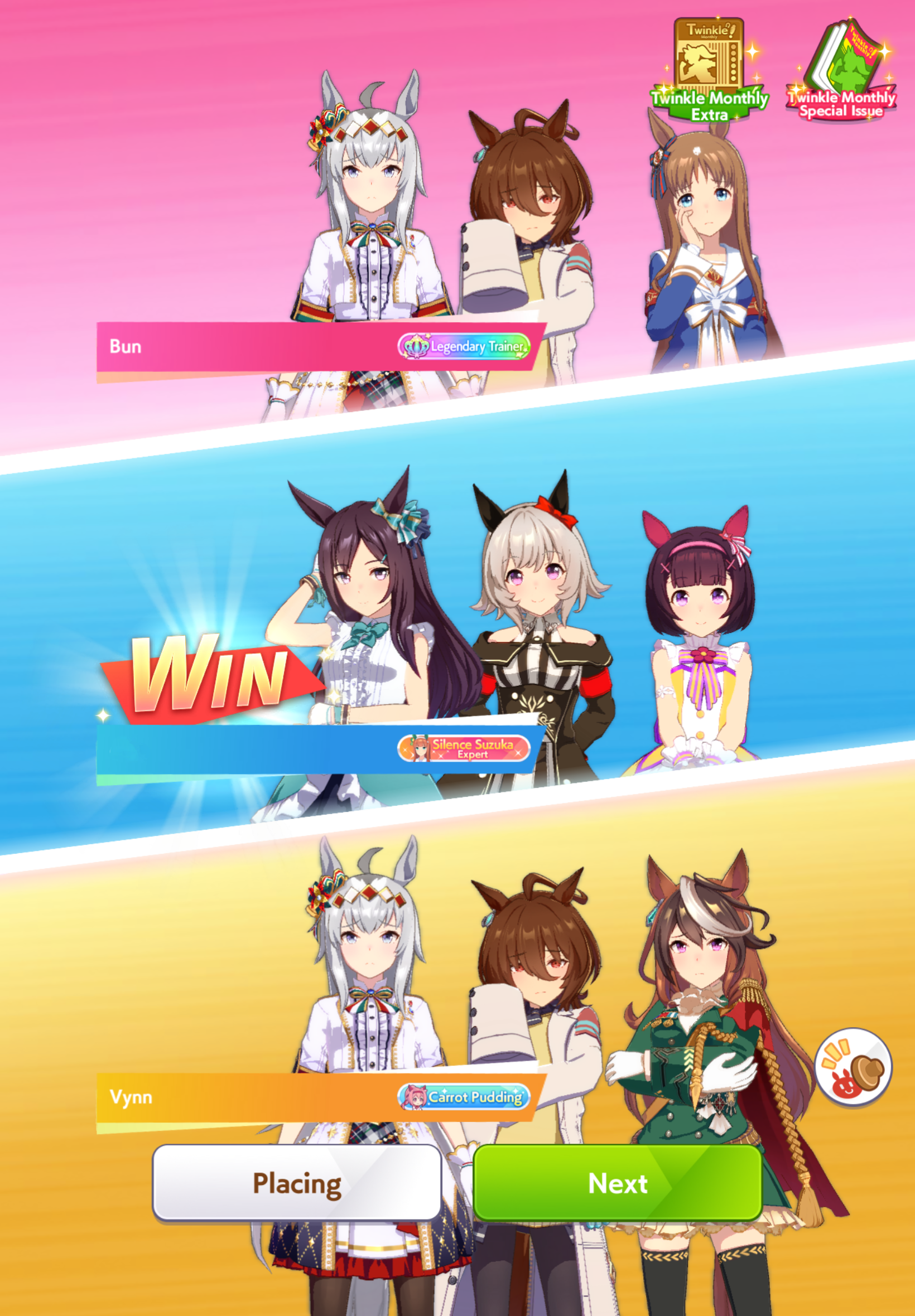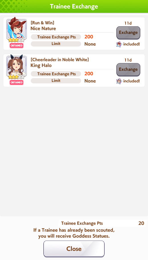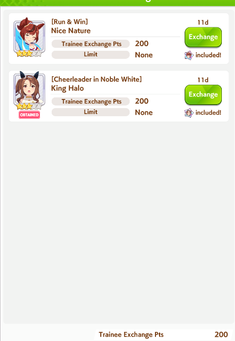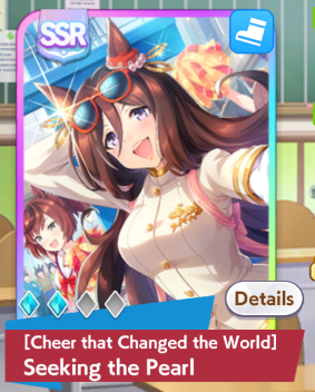 Current Rate Up: Yaeno Muteki (3*), Cheerleader Nice Nature (3*), Cheerleader King Halo (3*), SSR Twin Turbo (Speed), SSR Ines Fujin (Guts), SSR Bamboo Memory (Guts), SSR Seeking the Pearl (Speed)