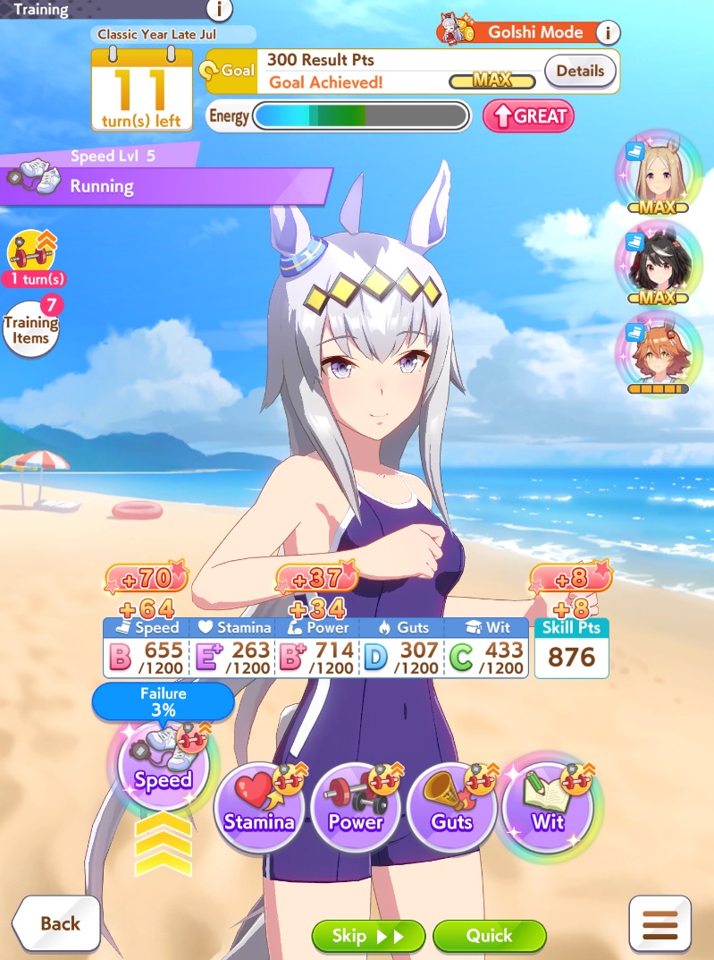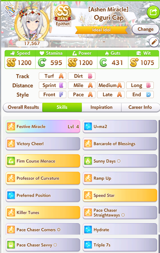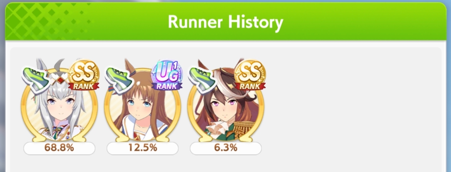 >>564936324I feel like I should experiment more with decks, I locked in 2 speed 2 power 2 wit at the start of the scenario and haven't used anything else except on my sprint TT umas.