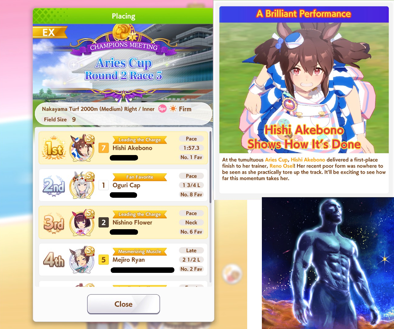 >>564923980I got Dance Fuji Kiseki, Yaeno, Cheer King, and had to pity Neicha. It was worth it because she's beautiful and I'm using her for the current CM.