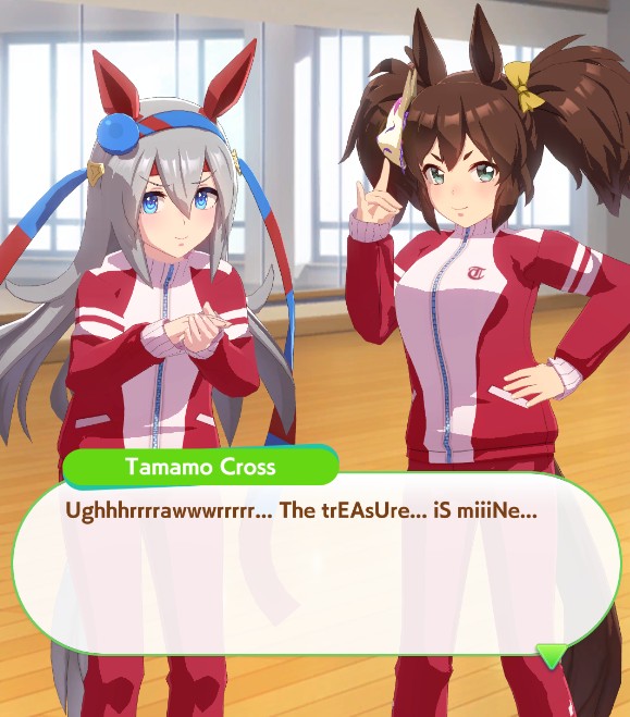 >Kikkasho>QE2>Japan Cup>Race fatigue -> Skin Outbreak, mood down variant>scenario event plays for +4 guts>in the same turn that Skin outbreak was applied, it activates for a -2 moodBitch you have been done with your 3rd race for 3 fucking seconds how are you that sad you didn't even give me a chance to moisturize you. You haven't even got off the track. Your skin did not turn to scales since the start of the race.That's probably the most frustrating part of this game, honestly, that there's no grace period after aquiring a condition. aquired negative status is always the final effect to trigger in a turn. Aquiring it and having it trigger in the same turn is like buying a soda from a vending machine and it gets stuck against the glass, then a clown shows up out of nowhere and slaps a pie in your face and a teenager kicks you in the balls before you can even wipe your face.Trainee was Rudolf btw
