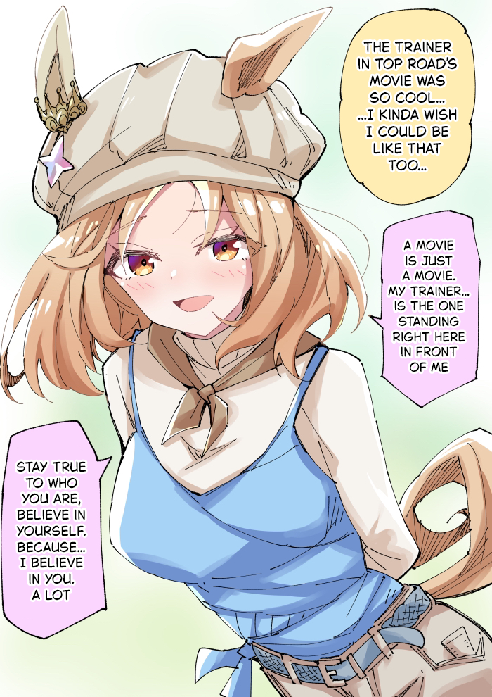 >>564922730>Finally, you get recruited by a trainer, and a talented one>Finally, you’ll get to live that life, and all those stories of shared dreams and efforts you’ve heard since you were a child will come true. And who knows? maybe there'll even be a chance for a taboo love between a student and her teacher. >Full of hope, you take a commemorative photo together to celebrate your first victory, and he decides to put it in a photo album as a memory of your teamwork and sacrifice, which makes you so happy >After many memories and races along the way, one day you decide to look through that album and you see your photos, but you also see something else >You aren't the first page, that spot was already taken by someone else. With all the dread in the world and the fear that this sweet dream is finally coming to an end, you open that first page, praying it was just an oversight by your trainer, after all, he’s always been scatterbrained >But when you open it, there she is a photo of another umamusume that isn't you. And right next to her, with a smile you thought he only saved for you, is your trainer >Your throat tightens, your heart races, and your mind fills with a red mist and doubts... "I wanted to be his first umamusume"