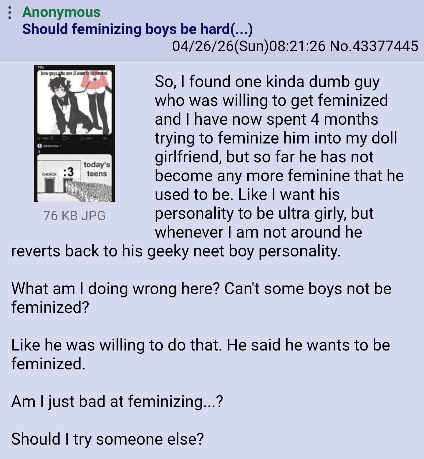 >>564929312don't rep sisbe freeyou can be your femra... I believe in you