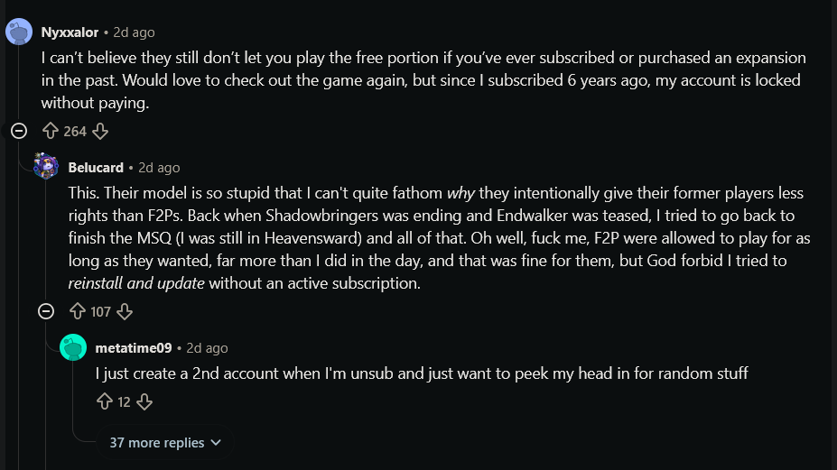 >>564922505As a role player I like to play things that I think most people aren't playing, so I stand out and am less likely to overlap my character's themes with other players'. So in my dumb little brain, I thought, "Surely nobody would want to play a MALE Miqo'te. Who would want to be a catboy?"