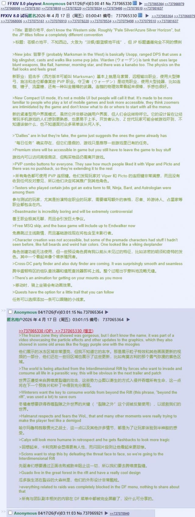 Baker was playing a moba Edition>Upcoming Expansion: Evercoldhttps://na.finalfantasyxiv.com/evercold/>Moogle Treasure Trove - (March 31st -> April 28)https://na.finalfantasyxiv.com/lodestone/special/mogmog-collection/202603/lba1j4i815>Patch 7.5 Notes (Preliminary)https://na.finalfantasyxiv.com/lodestone/topics/detail/33c47e6b7aa6fe0750ebb167841e35bea26ceb7e>Patch 7.5 (April 28th) Preview Sitehttps://na.finalfantasyxiv.com/dawntrail/patch_7_5/>Resourceshttps://rentry.org/xivgresourceshttps://rentry.org/syncshells>Meetups • April 26, 6:00 PM EDT | Crystal, Mateus, Shirogane W29 P16, Spring Queen Auction! (Ongoing) >>564024336• April 29, 9:00 PM EDT | Primal, Famfrit, Lavender Beds W15 P20 | Spooky Club: Future Diary (Mirai Nikki)• May 1, 7:00 PM EDT | Goblin, North Shroud (21.8, 26.6) | Elezen Meetup >>564559747• May 3, 10:00 PM CEST | Twintania, Goblet, W13 P30 | F1 Miami GP Live Party >>564845270Previously: >>564914405