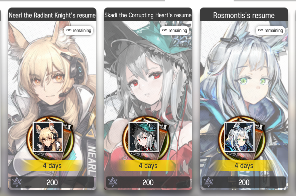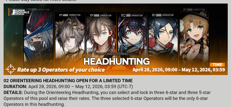 Previous thread: >>564903954>CURRENT, FUTURE GLOBAL/JP/KR CONTENT:[4/24-5/8][Standard]6* Specialist Dorothy, 6* Medic Reed the Flame Shadow (Shop), 5* Medic Vendela, 5* Sniper Kichisei, 5* Caster Warmy (Shop)[4/14-5/5]Retracing Our Steps - 6* Supporter Astgenne the Lightchaser, 5* Guard Hadiya, 4* Caster Akkord[4/14-4/28][A Shared Oath of Guardianship]6* Vanguard SilverAsh the Reignfrost, 6* Caster Pramanix the Prerita, 5* Sniper Snow Hunter[4/14-4/28][Log-in]Estelle skin[4/14-5/12][EPOQUE & Test]Vina Victoria, Civilight Eterna, Ho'olheyak; Lappland the Decadenza[4/14-5/12]Mass skin reselling[4/28-5/26]Stronghold Protocol: Alliance - Humus skin[4/28-5/12][Orienteering Headhunting]6* Supporter Stainless, 6* Supporter Tragodia, 6* Guard Ulpianus, 6* Caster Blaze the Igniting Spark, 6* Guard Zuo Le, 6* Specialist Swire the Elegant Wit, 5* Guard Gracebearer, 5* Medic Paprika, 5* Defender Firewhistle, 5* Vanguard Surfer, 5* Medic Nowell, 5* Defender Bassline>CURRENT, FUTURE CN CONTENT:[4/23-5/7][Standard]6* Defender Penance, 6* Guard Mlynar (Shop), 5* Caster Tecno, 5* Supporter Sand Reckoner, 5* Vanguard Fang the Fire-Sharpened (Shop)[4/25-5/9]Duel Channel: Ivy Vine[4/25-5/23][Ambiance Synesthesia]Lemuen, Necrass, Saria[5/1-5/22]EP17: Critical Phase Transition - 6* Caster Viy (Bий)[5/1-5/15][Sealed With Time]6* Medic Kal'tsit Esperanta, 6* Vanguard Closure, 5* Defender Crackborne[5/1-5/15][Log-in]Aroma skin, 1* Caster Gallus2[5/1-5/29][Iteration Provident & Bloodline of Combat]Exusiai the New Covenant, Haruka, Nowell; Mon3tr, Gracebearer[5/15]Reclamation Algorithm: Relaunch Anchor>/akg/ website:akgcc.github.io>AK EN Database:puppiizsunniiz.github.io/AN-EN-Tags/akhrchars.html>More valuable resources:rentry.org/akg_resources>/akg/ merch guiderentry.co/akg_merch>Pull calculatorhttps://imivi.github.io/arknights-pulls-calculator/
