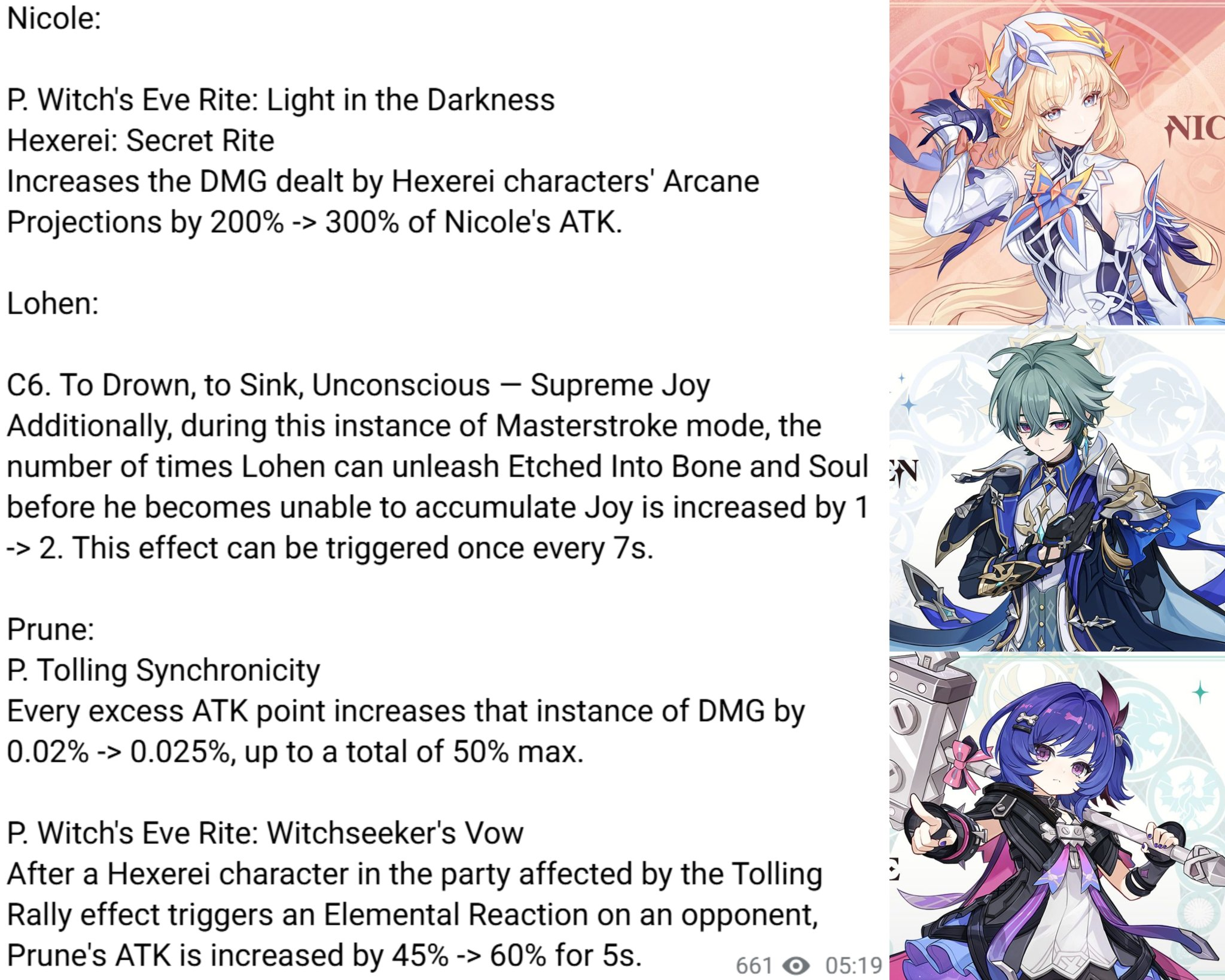 >>564947150Nicole nerfedLohen c2 nerfedPrune buffed