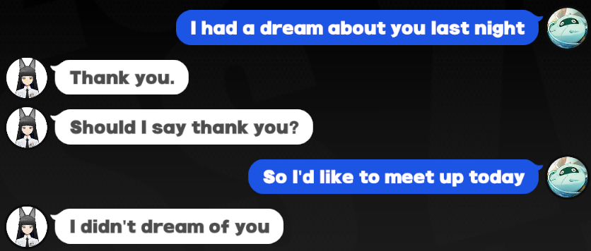 if I ever get a genie lamp my wishes will be the following.>1. Bibian Gf for me>2. The phone in game works with Deepseek's AI and you can actually DM the characters.>3. SEA posters get their picture and country flag attached to any reply they write in social media.