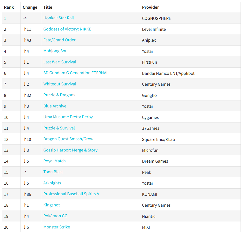 >>564971054>Nobody cares about the 10+ year old PNG collector which breaks top 10 every month for 10 years on a site with no China buff.The funny thing FGO and Pokemon would have been Top 1/2 in most months if not for the CN x2 multiplierr/gachagaming was ok with that until Nikke, a gooner game with no males above Hoyo games was too much