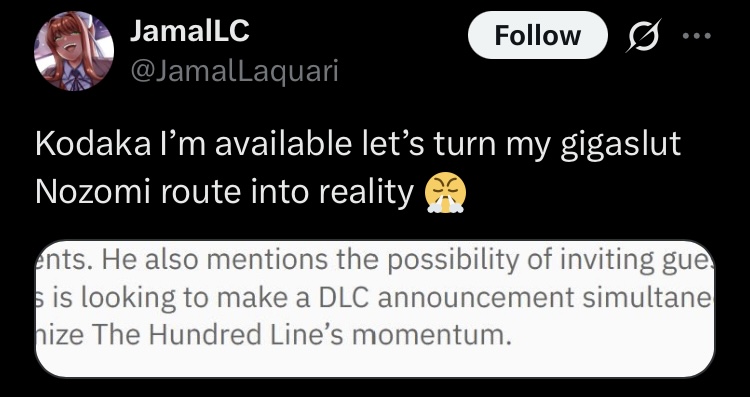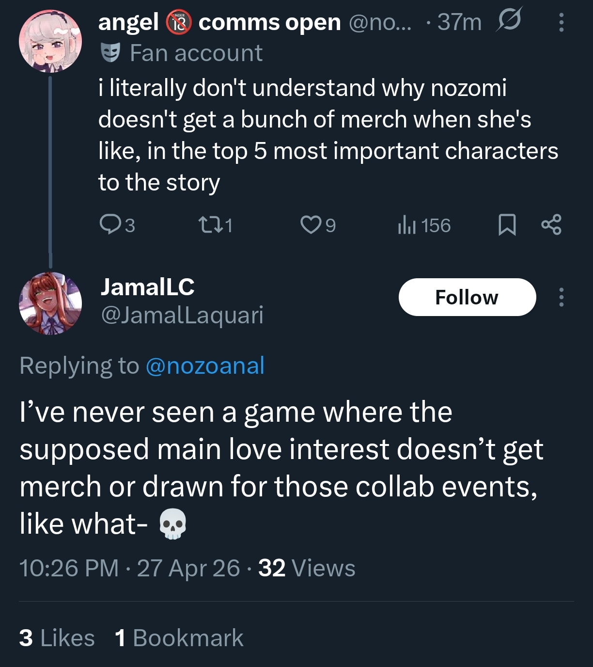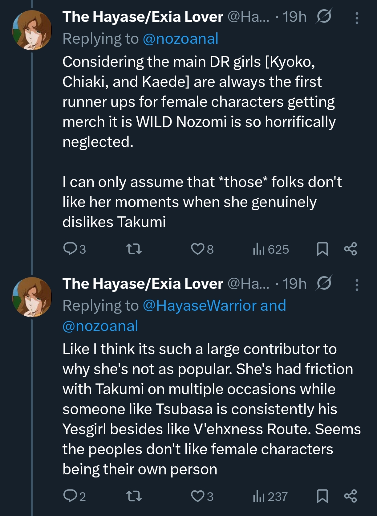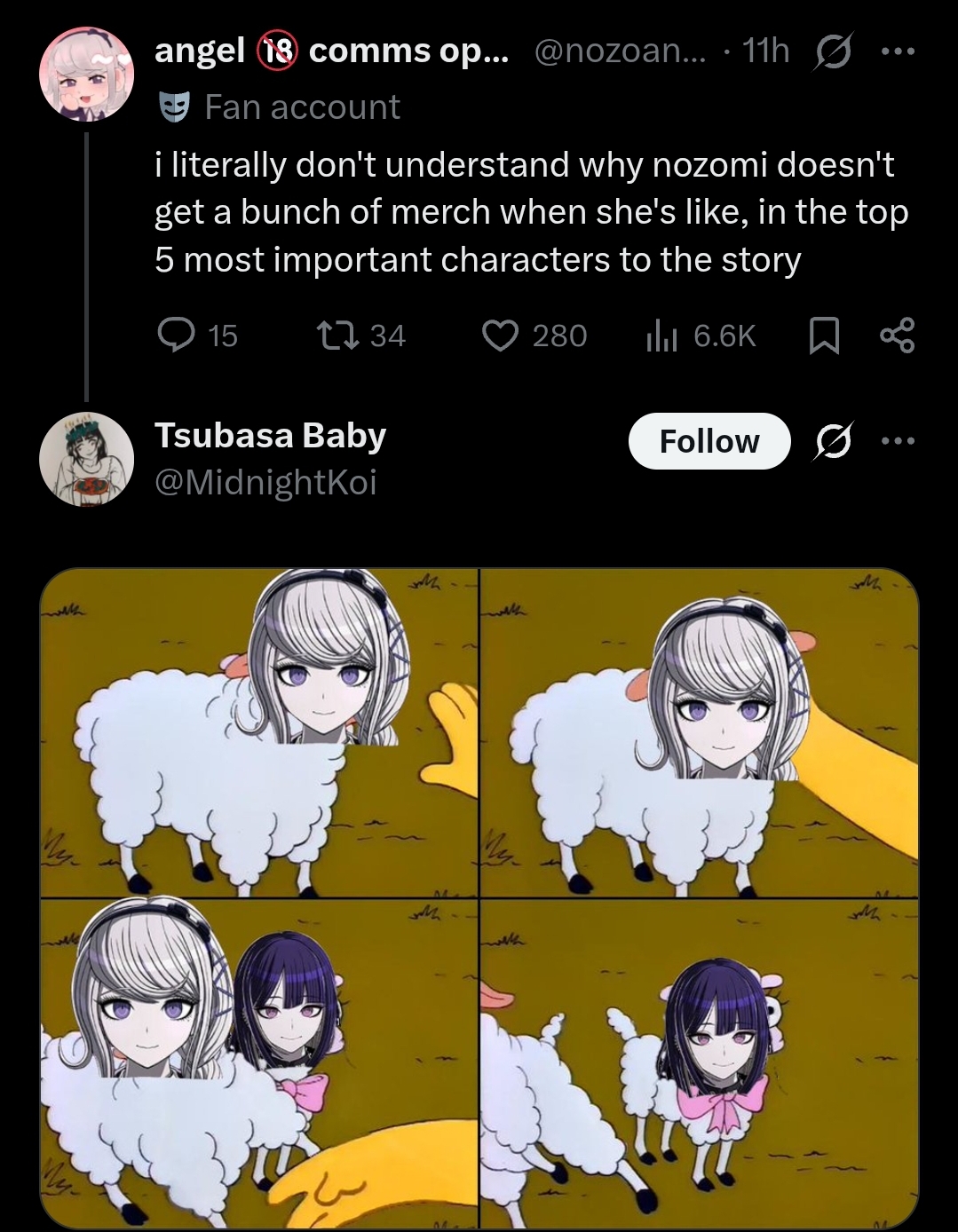 >>565083217>Replying to @nozoanalMental illness for such posters to post "uwu it's so problematic how everyone hates Nozomi for being a strong woman"