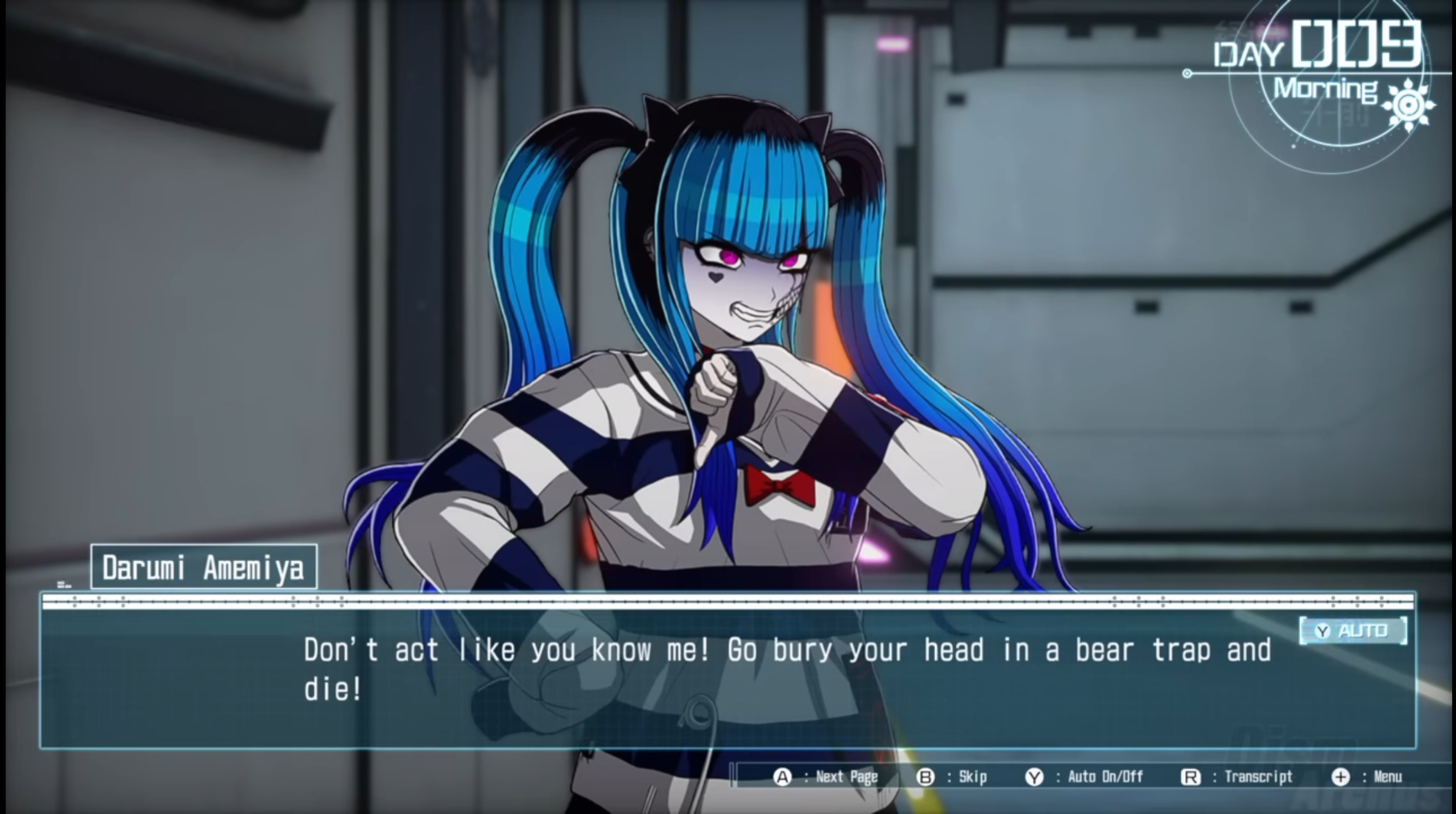 >>565080923>considering Moko is considerate enough to comfort Takumi after he started freaking out for not being into any of his potential options in the romance routeshe literally punched him unconscious and took him to her room