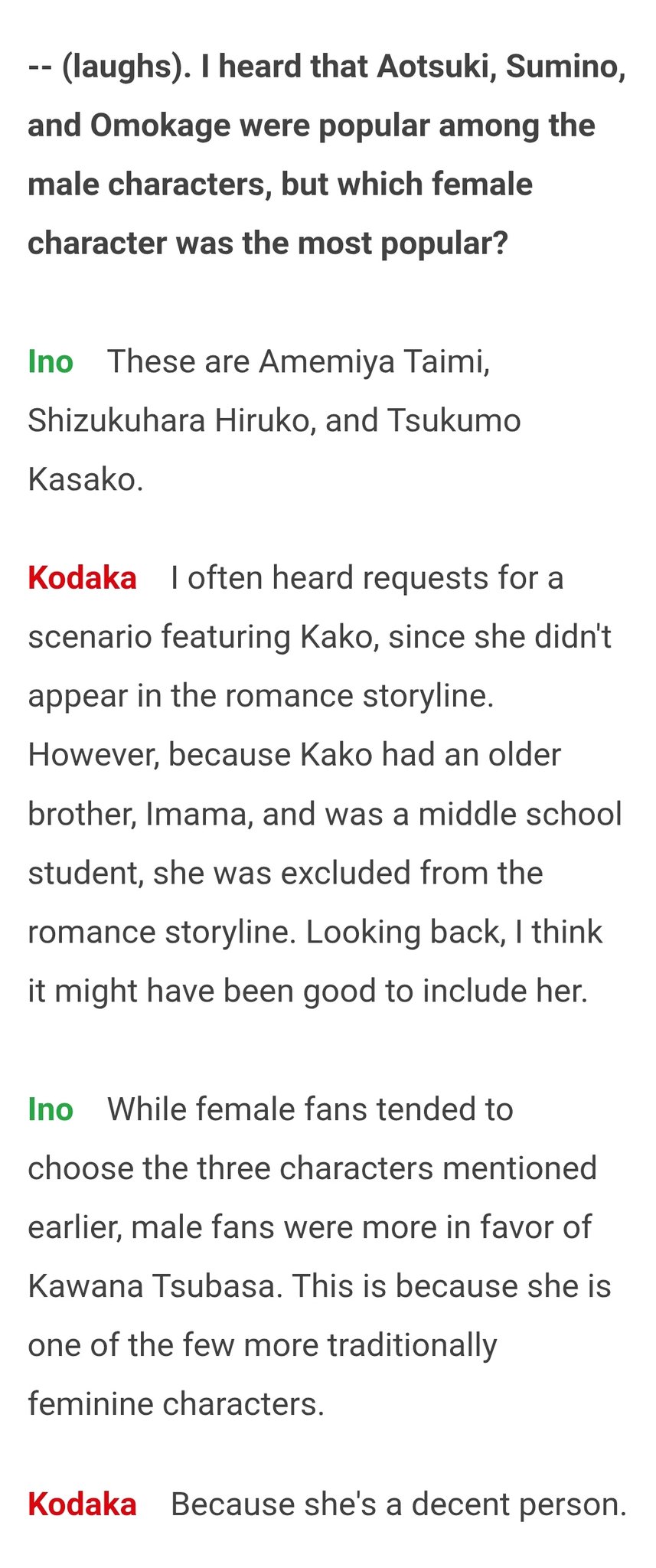 >>565080043>I feel like he's a tad bit upset that Kako and Ima don't perform as good as the other 4>didn't give them any routeHis own fault.
