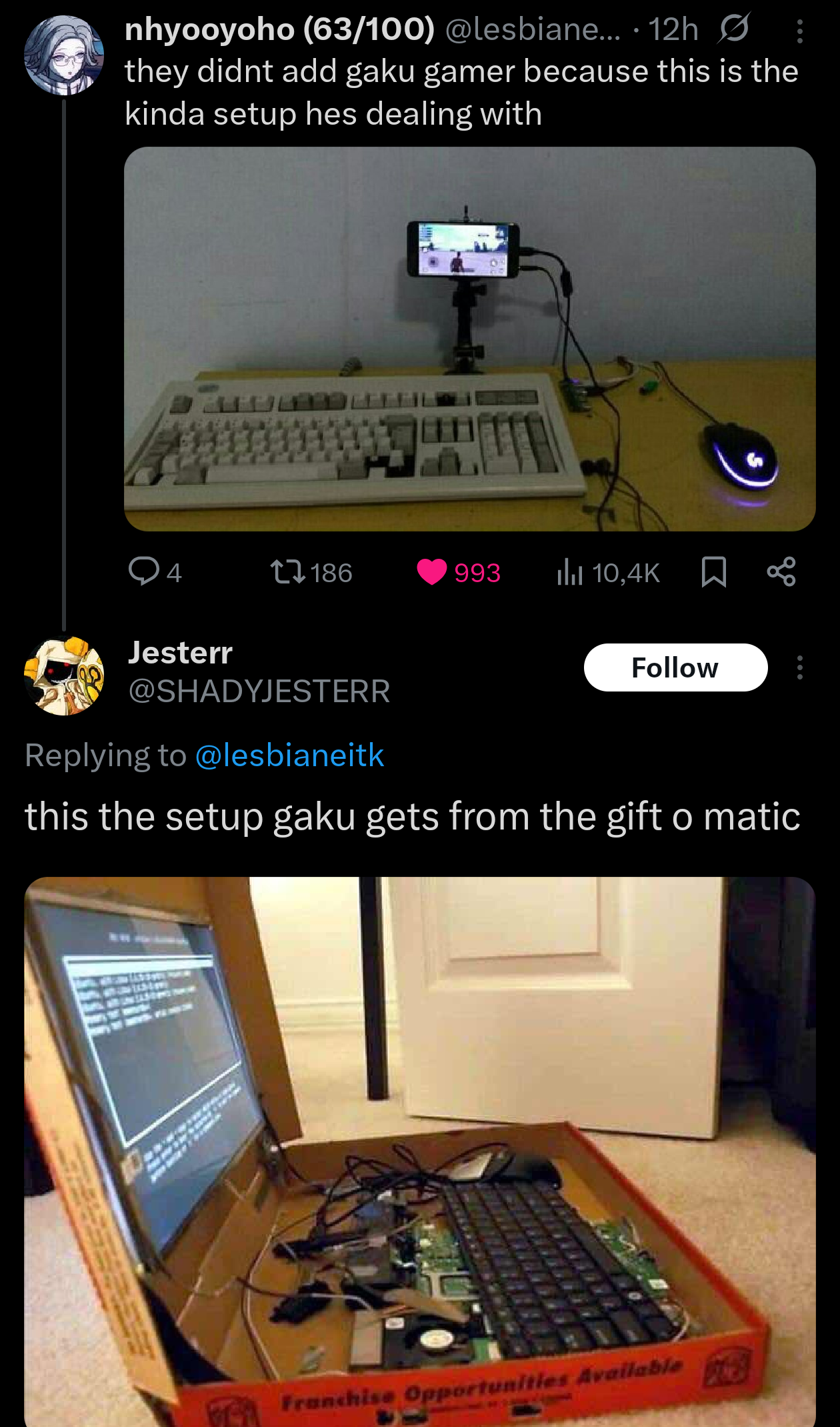 >>564955972https://x.com/g0_l4tt/status/2048062356270481431You wish someone would talk about you the way Gaku yume talks about him.