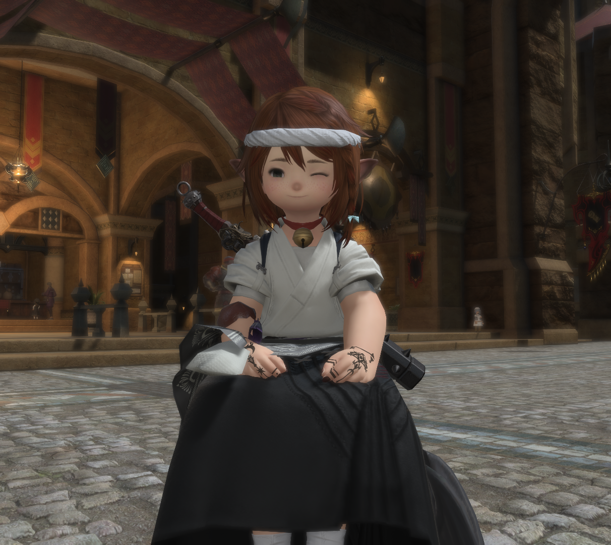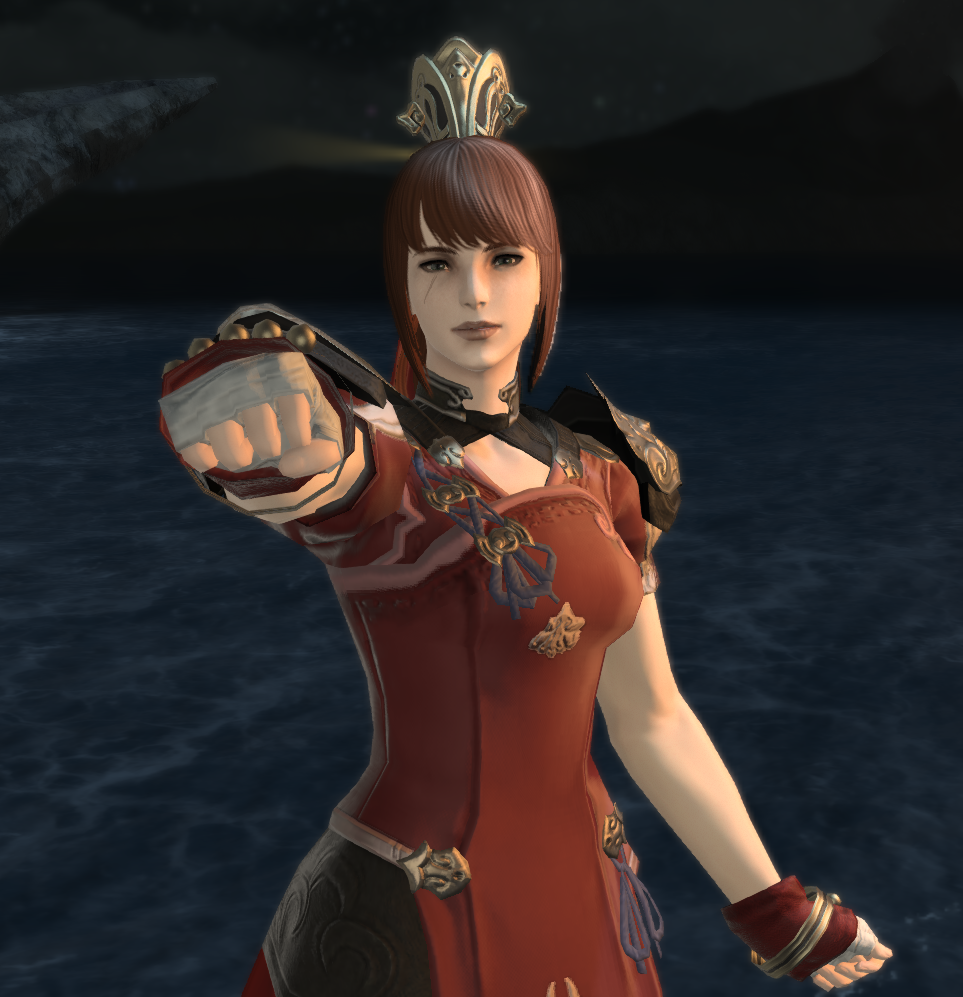>>564956467Why not try the Yanxian Hachigane of Fending? It's a drop from Doma Castle.As to the hand gear... The little ribbons kinda throw your look off, but you could also hand wave it as personal drama flair or a sentimental item. ie "My bethroned gave me these so I would know I have to return home no matter what." Or something melodramatic like that.Up to you really.