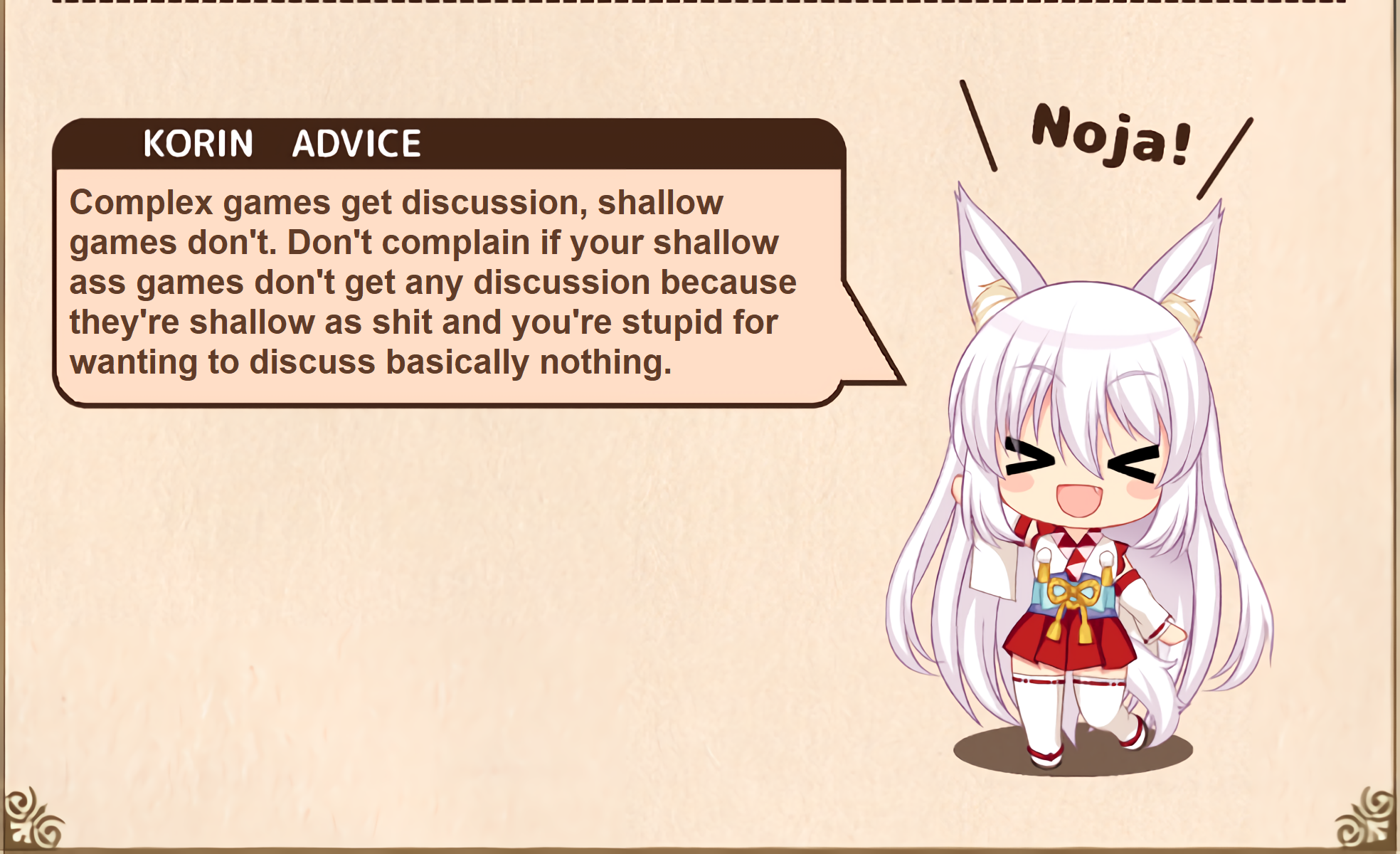 schizos don't play games it would cut down on the amount of time in a day they have to fuck up the thread quality.