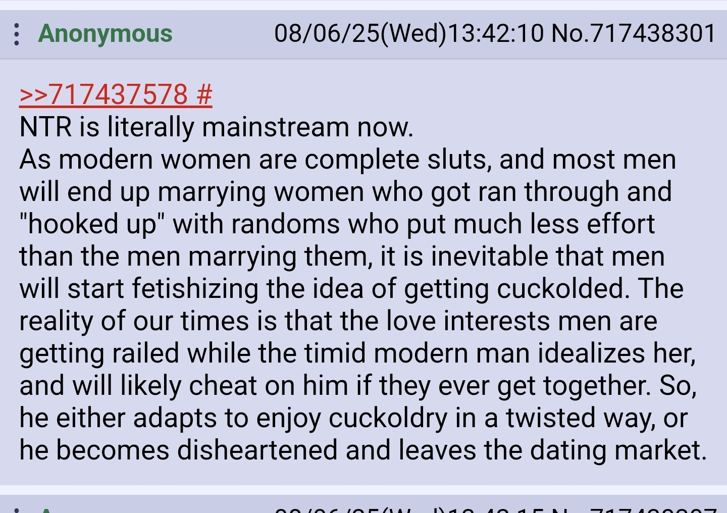 >>565002725No, no one would rather have furries. They sit much lower in the hierarchy than literal irl cuckolds