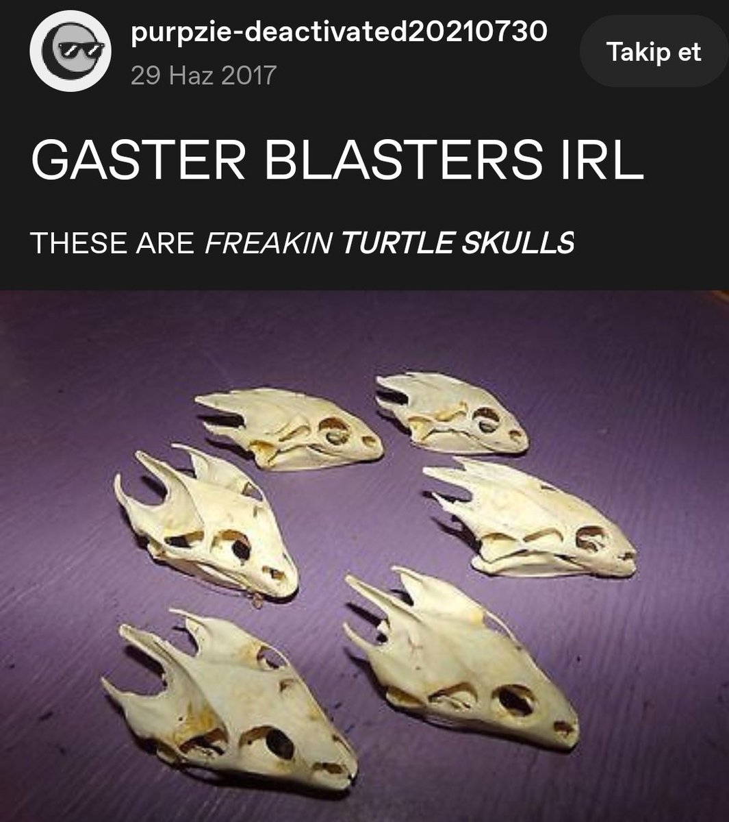 >>564998028>>Gaster Blasters look exactly like turtle skullsIs this more true for turtles than for the other dozen animals people say this about
