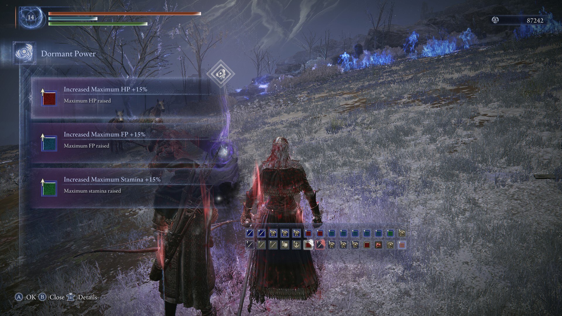 I had a fun and lengthy session in upper ainsel, an invader joined in nokstella with a name asking for frozen maggots and I tried to separate him from the full radahn set host at first so I could give him like 50 from my inventory, he was very grateful and did a couple extreme repentances but the host still murdered him without rest, then later I got killed very embarassingly by some danish bloody finger and I still feel ashamed about it but at least I guided the host to the grand cloyster grace before dying