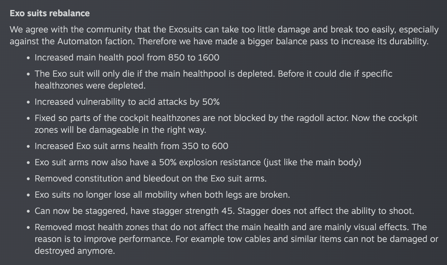 >here's your mech buffs chud>also here's more enemy durable damage buffs that we won't post the concrete numbers of>also other enemy buffs scattered around ranging from increased health to outright armor upgrades because fuck youI'm gonna test out the warbond, but they're not even hiding it at this point.