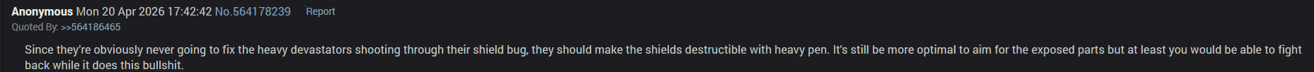 So how long until they change hive guards back to ap3? I think it'll be a month or moreeither way between that and the xmg being light pen I think i'm going to just stop playing this fucking game until sony sends the tard wranglers in again and forces these swedes to stop fucking up their game