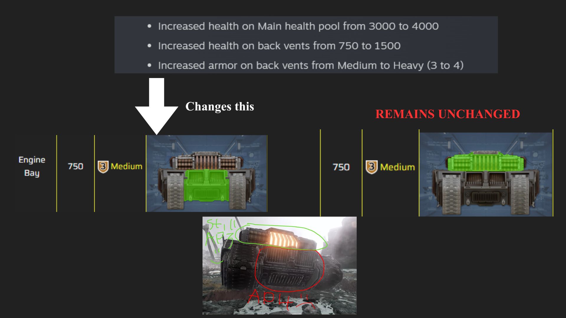 >Fleshmobs now can deal damage to vehicles What, how does that gets past testing?>all tanks>increased armor on back vents from medium to heavy>increased health on back vents from 750 to 1500Why tho