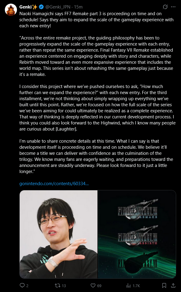 >>565279035>Remake 7.5 million and counting >Rebirth has already outsold XVI on PC>Switch 2 soonHamaguchi is going to get promoted again