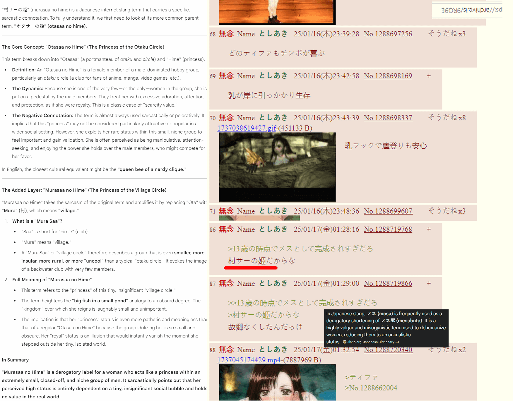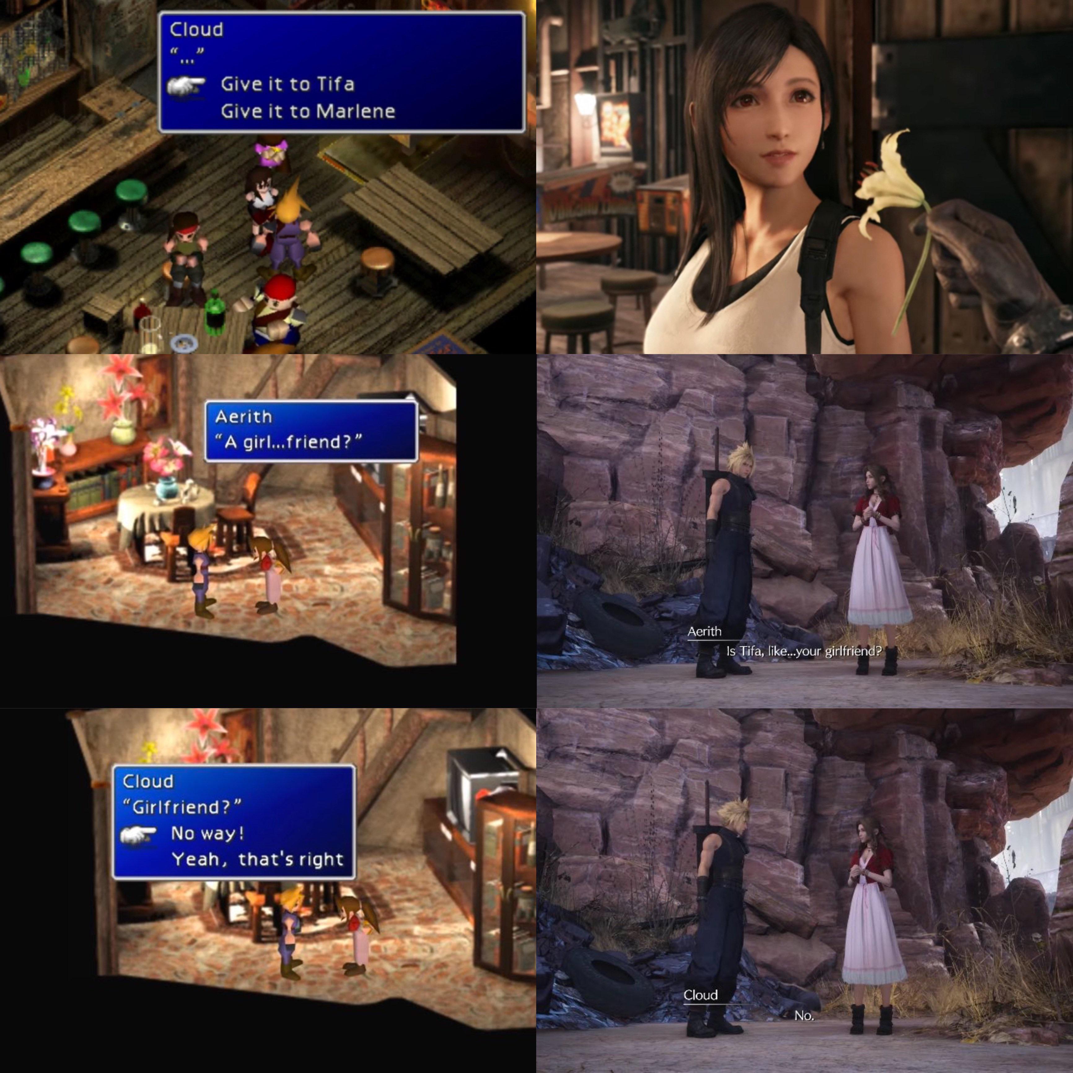 > Aerith is a based trump supporter trad girl> Tifa is a w*ke bitch who, if Cloud was her canon love interest, but isn't, she would abort his child