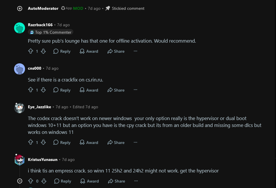 ARE YOU FUCKING SERIOUS FINAL FANTASY 15 CRACKED DOESN'T RUN IN FUCKING WINDOWS 11??I DON'T WANNA FUCKING USE HYPERVISOR WHAT THE FUCK