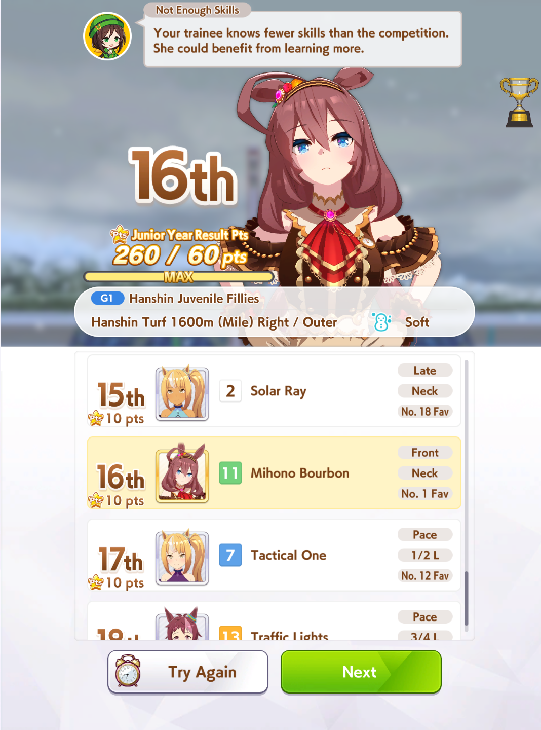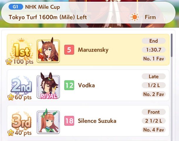 I'm done with mile races.This is fucking cancer.Never doing a mile race again unless there are no other mediums or longs available, G1s can fuck off too.