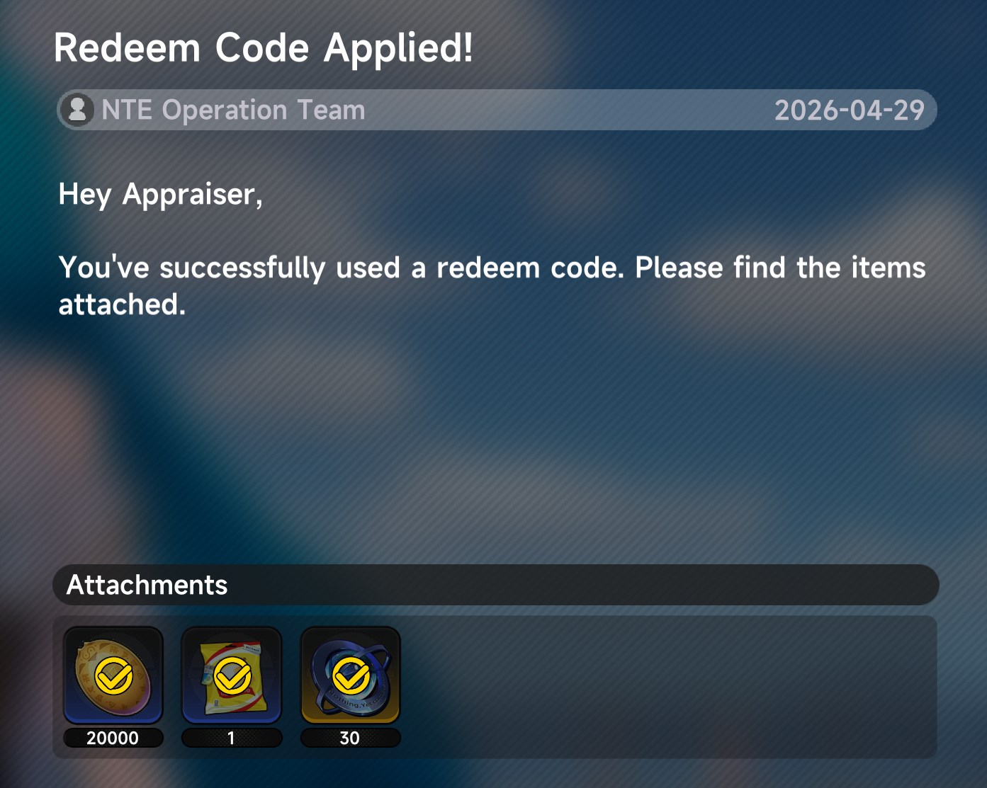 To help you kick off your adventure in NTE with style, we've prepared a few gifts for you: