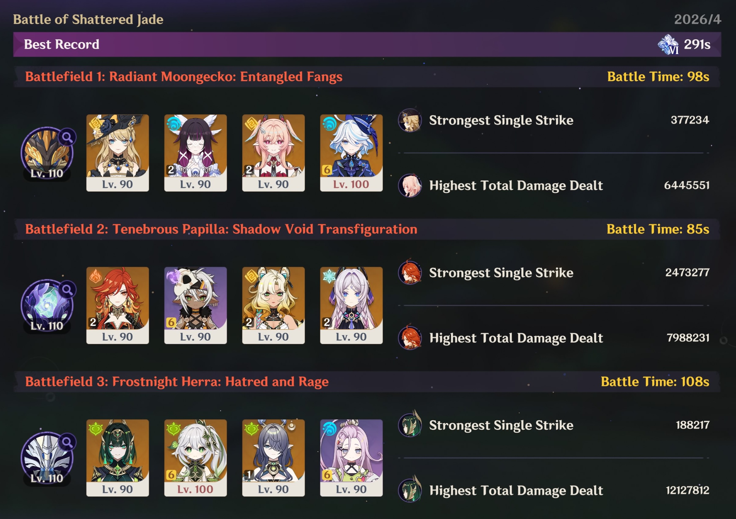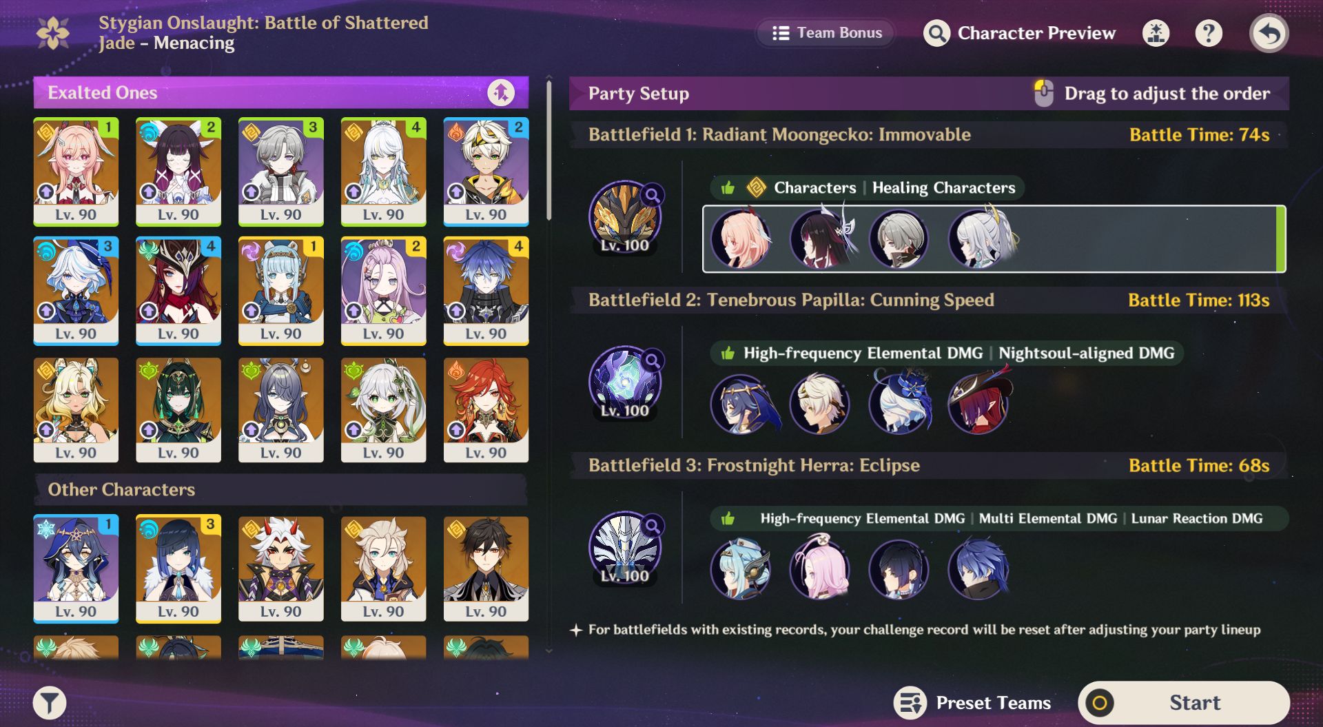 Rolled C1 Lauma so I can more happily run a better Nefer team. Let me move some other characters around and improved my times a bit.