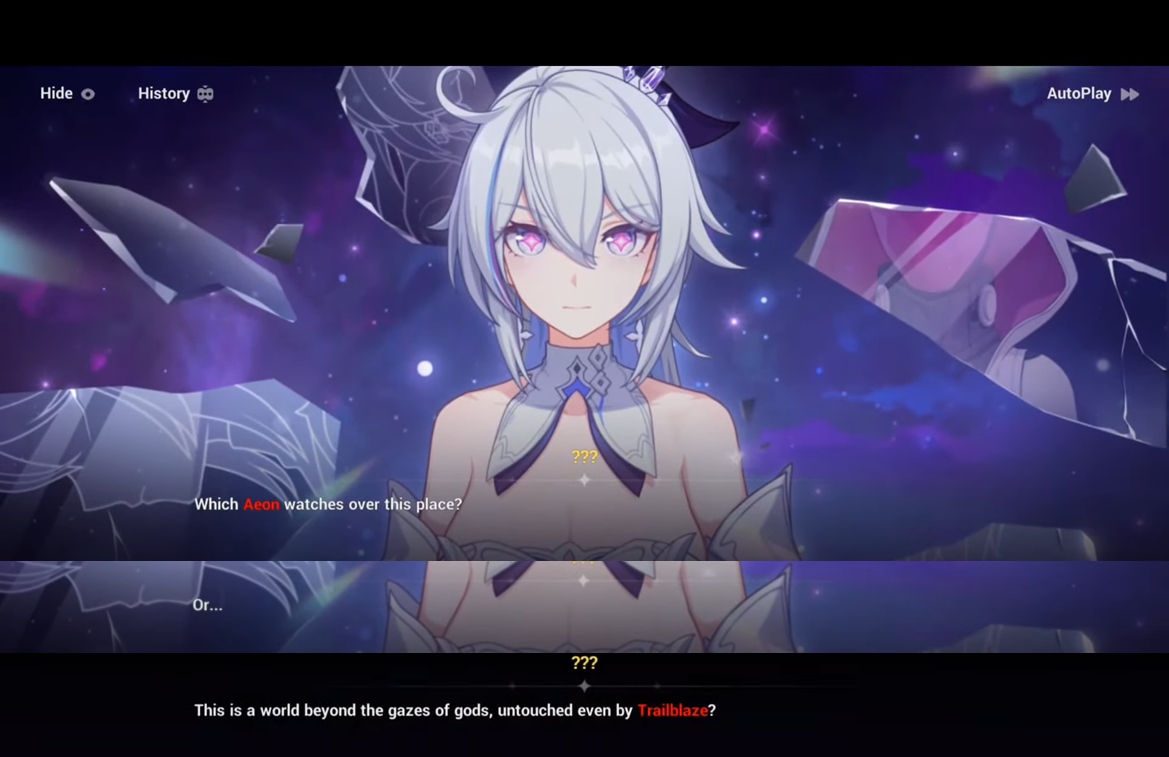 >The Aeon of Elation just raised the stakes?>Precisely. Aha has raised the stakes.>"...The winner of these Phantasmoon Games shall inherit all my authority, and become the true, permanent Aeon of Elation.">The final winner will inherit the authority of Elation itselfI don't understand why HSR always has repetitive dialogue like this.