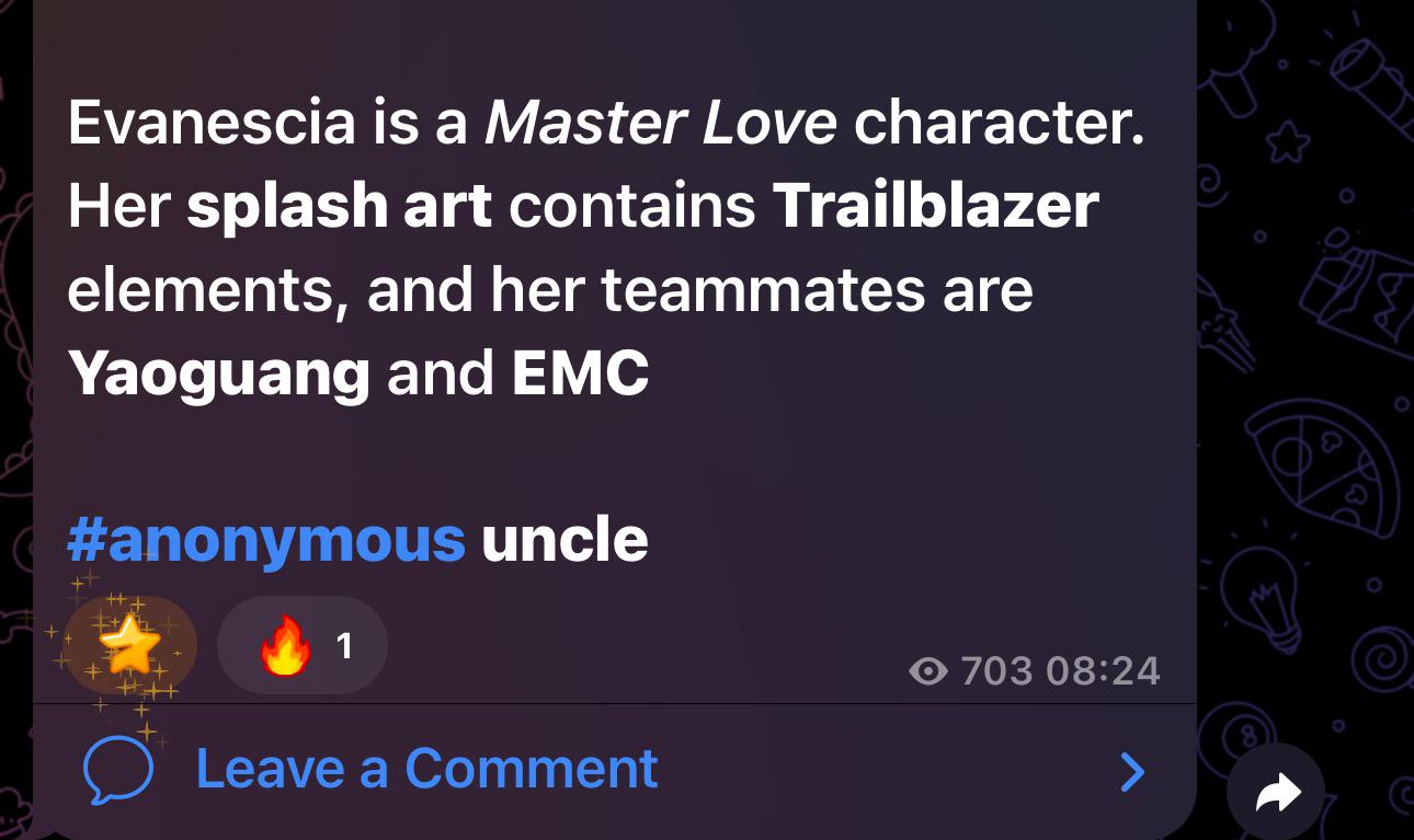>>565313101Imagine being Acheron, waiting all this time for the mythical Acheron support that'll make her t0 again only for the supposed one to be taken away by your rival that's been mogging you and stealing the spotlight ever since Penacony's release.