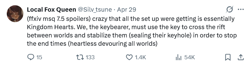 >>565339972So like, I have a bigger problem with the structure of the reveals and payoffs than I actually have with whether or not it's plausible but let's tackle your post first;>It's not a first to see people channeling Primals into themselves.Yes, but Yotsuyu and Ysayle weren't Garlean.Garleans can't manipulate Aether, it's why they can't use magic and why they have to use magiteck.Ysayle was extremely devout, and Yotsuyu was in the throes of absolute despair. Powerful emotions and belief are core principles of creation magic/primal summoning.Zenos pretty distinctively lacks much of those factors.You could make an argument that he really wants to fight us but I feel like if you're going to take that stance then he should have become a primal at any other point he was surrounded by Aether. It just falls apart under scrutiny.Imagine for a moment that Yoshi or some other writer had written a string of hype moments and then they filled in the gaps with no regard for logical consistency - that's how EW was written. One of those moments was having Zenos show up so you could ride Shinryu and then battle Zenos at the end.There are countless ways they could have written Zenos into Ultima Thule but they opted for this one purely because it's so fucking hype that he just shows up in the darkest hour to save the WoL that people are too caught up in the emotions of the moment to actually critically examine the events that had to happen to lead up to that point.Like, why the fuck, especially after the events in Garlemald, would anybody on the planet trust Zenos with enough aether to turn into Shinryu? Truth is there is no reasonable explanation which is exactly why they simply don't give one and fade to black when he walks into Old Sharlayan.