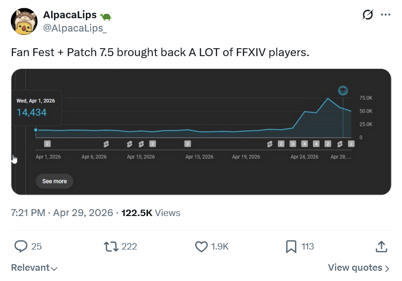 >Upcoming Expansion: Evercoldhttps://na.finalfantasyxiv.com/evercold/>Patch 7.5 Noteshttps://na.finalfantasyxiv.com/lodestone/topics/detail/07320affa7e0fcd9685afcbe54fbf55405b6d822>Patch 7.5 (April 28th) Preview Sitehttps://na.finalfantasyxiv.com/dawntrail/patch_7_5/>Resourceshttps://rentry.org/xivgresourceshttps://rentry.org/syncshells>Meetups• May 1, 7:00 PM EDT | Goblin, North Shroud (21.8, 26.6) | Elezen Meetup >>564559747• May 3, 10:00 PM CEST | Twintania, Goblet, W13 P30 | F1 Miami GP Live Party >>564845270 Previously: >>565316761
