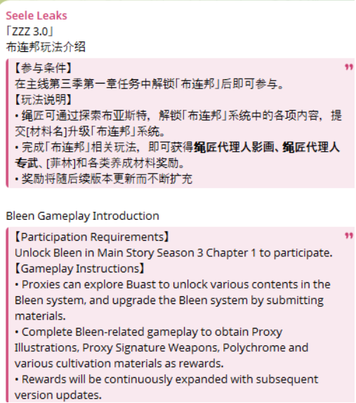 Previous >>565326958>NewsAgent Record | Normahttps://www.hoyolab.com/article/44852924Agent Record | Velinahttps://www.hoyolab.com/article/44852574Agent Record | Pyroishttps://www.hoyolab.com/article/44836786Version 2.8 Special Programhttps://youtu.be/UaqNm1F6-rI >Newest Trailer/Teaser/Character demohttps://youtu.be/ew9nVnCl8AY (EN)https://youtu.be/L5DEAV17cYY (JP)https://youtu.be/tN0ibny9Ans (EN)https://youtu.be/25vaOHfSDUY (JP)https://youtu.be/7FbKuJv0e1I (EN)https://youtu.be/rBgqwLdtX-I (JP) >Upcoming Events for 2.7https://zenless.hoyoverse.com/en-us/news/163253Chronicle of Simmering Flavors 03/25 - 05/05All-New Program 03/24 - 05/05Special Disaster Control Squad 04/03 - 04/20Old Friends, New Commissions! 04/15 - 05/05"En-Nah" Into Your Lap 04/15 - 05/05Adventure Footage Freeze Frame 04/22 - 05/05Charge! Battle Against the Negative Reviews 04/29 - 05/13Advanced Bounty: Area Patrol 04/10 - 04/15Data Bounty: Combat Simulation 04/29 - 05/04 >Redeemable codes (claimable in-game or online)https://zenless.hoyoverse.com/redemptionZENLESSGIFTZZZCUTENESSZZZ27CHAMPIONZZZ28HERO >Resources and useful linkshttps://rentry.org/zzzlinkshttps://rentry.org/ZZZ-Friendshttps://rentry.org/ZZZ-Guilds >/zzz/ OP pastebin (use this if making new thread):https://pastebin.com/PzbMf13P